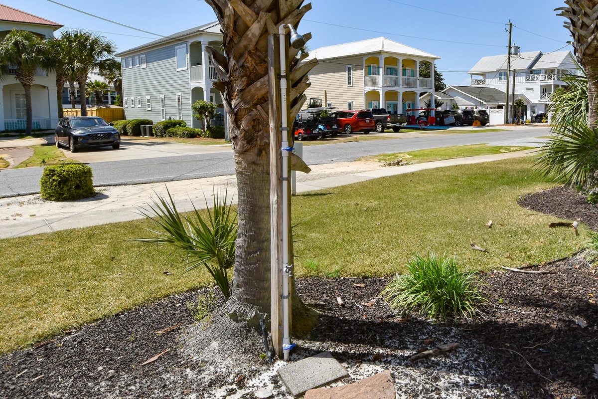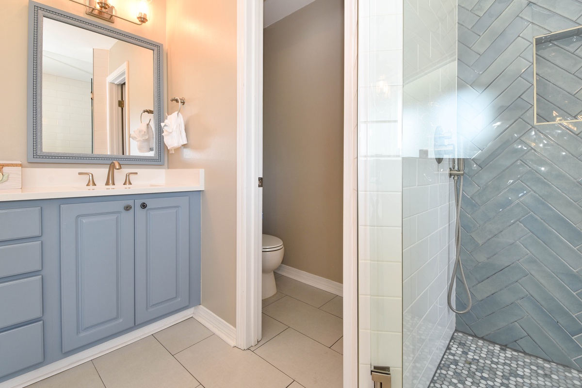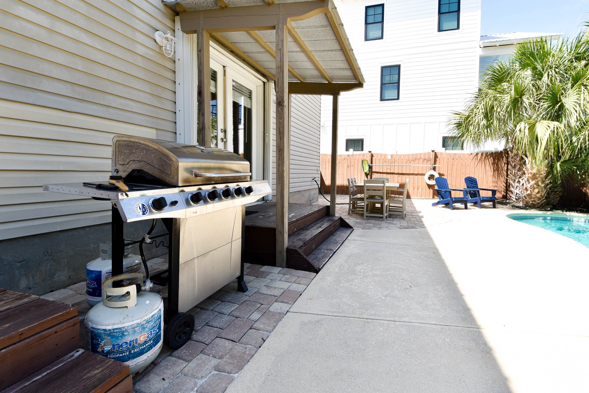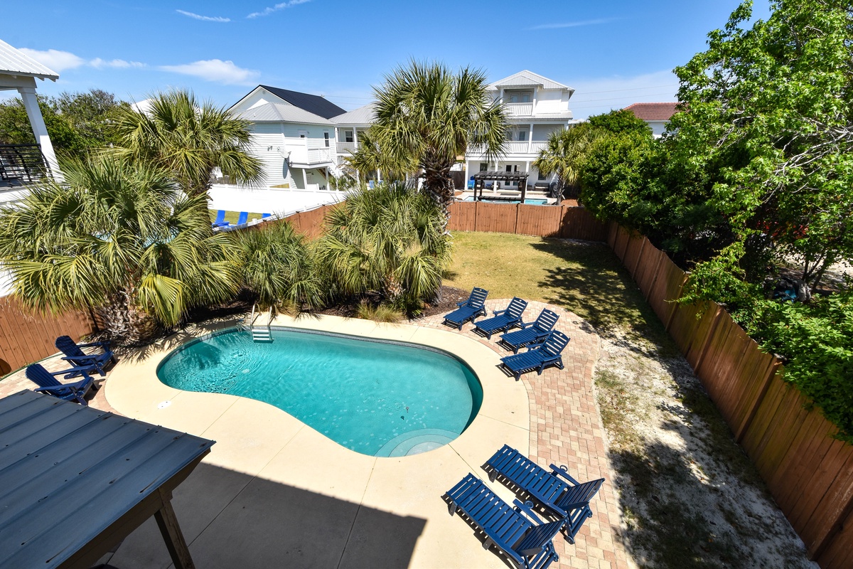 Welcome to A Wave From It All. This beautiful four-bedroom, 3.5-bath home has an open concept layout with a coastal farmhouse feel to sleep up to 16 guests. Relax in the spacious living room with a flat screen TV after a full day in the sun, a perfect space for a game night. A beautiful kitchen features stainless steel appliances and granite countertops. Gather around the dining table that seats six with additional seating available for four guests at the bar after a delectable meal is served in the kitchen. When you aren’t spending time at the beach, venture outdoors to the private backyard with a private pool, green space, grill, and dining table. The first floor features a king bedroom, flat screen TV, and attached bathroom with walk-in shower. Completing this floor is a sleeper sofa in the living room, half bathroom, and a washer and dryer.