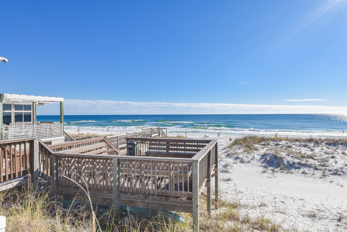This beautiful home is located in the Crystal Beach area of Destin and is less than a 2-minute walk to the Tarpon beach access and less than a mile from The Crab Trap. For added convenience four beach chairs and a wagon is included. Find your serenity at A Wave From It All.