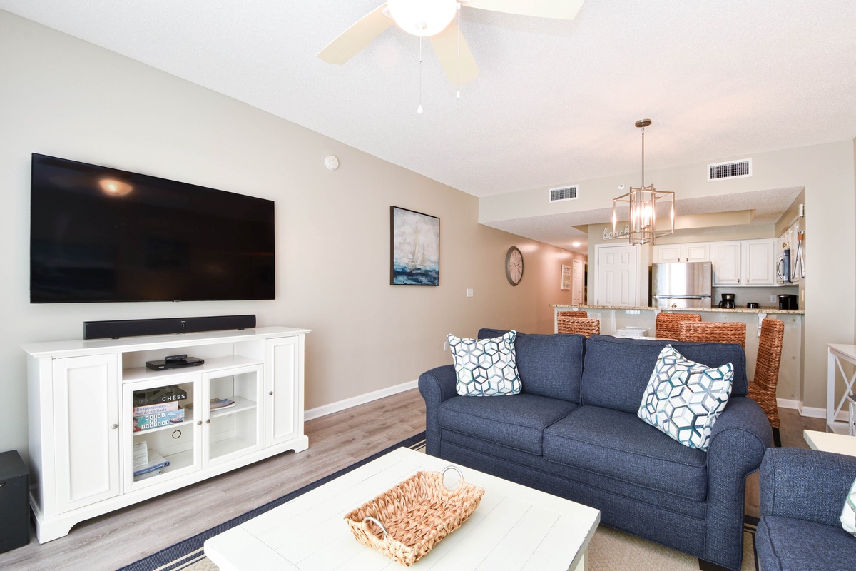Welcome to Majestic Sun 512B, a coastal-inspired two-bedroom, two-bathroom condo that promises the perfect beach getaway. With stunning Gulf views, a private balcony, and an open floor plan, this inviting space is perfect for relaxing and unwinding. In the evenings, curl up in the living room with a good movie or enjoy your favorite drink while taking in the views from the balcony. The fully equipped kitchen makes it easy to prepare a meal, and the dining area with seating for four, plus three bar stools, is the perfect spot to gather and share memories of the day. The master bedroom offers a king bed, a flat-screen TV, and an attached bathroom with a walk-in shower, providing a peaceful retreat. The guest room features both a queen and twin bed, a flat-screen TV, and quick access to the hallway bathroom with a tub/shower combo. Additional sleeping space in the living room allows the condo to comfortably accommodate up to six guests. For your convenience, there's an in-unit washer and dryer, and two beach chairs with a wagon to take to the sand. Come see why Majestic Sun 512B will become your family's favorite vacation spot for years to come.