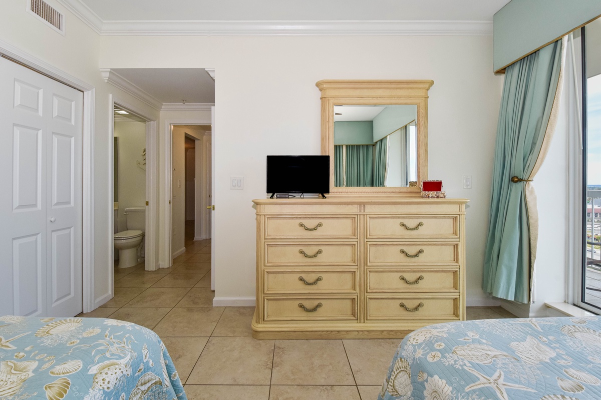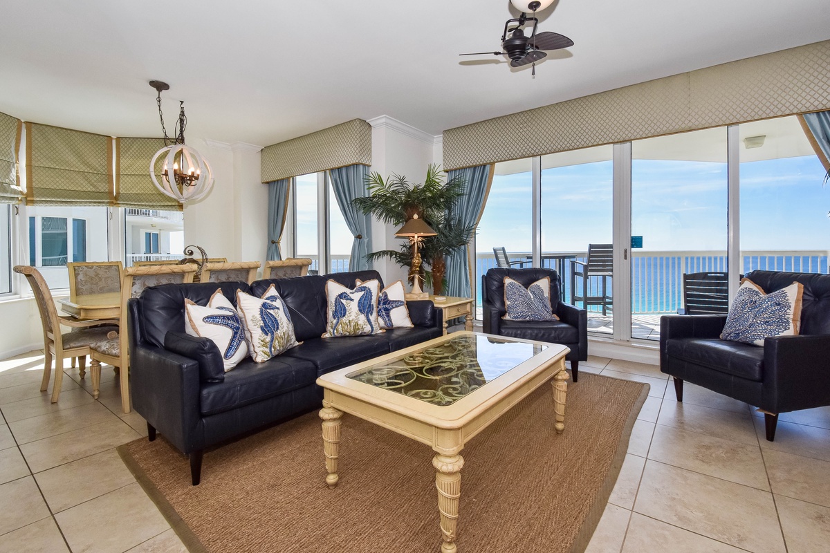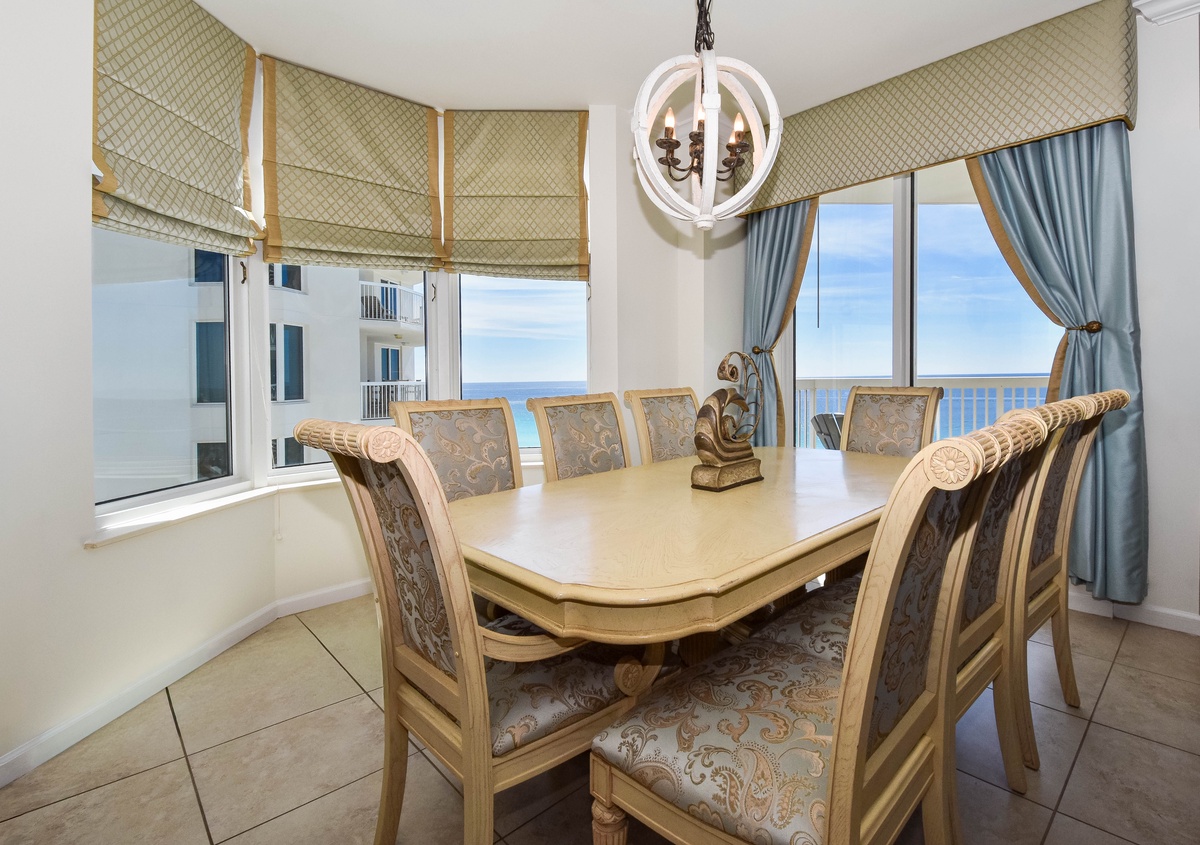 Welcome to Silver Beach Towers West 1501, your beachfront escape in the heart of Destin, Florida! Located on the 15th floor of Silver Beach Towers Resort, this spacious three-bedroom, three-bathroom vacation rental offers panoramic views of the Gulf and a relaxing coastal ambiance, perfect for your next Emerald Coast getaway. Inside, you’ll find travertine tile flooring throughout and an inviting open-concept living space designed for comfort and connection. Gather with family and friends around the large flat-screen TV, or simply relax and soak in the view through floor-to-ceiling windows that lead directly to the furnished Gulf-front balcony. The fully equipped kitchen features full-size stainless steel appliances, granite countertops, a decorative tile backsplash, and all the cookware and dishware needed to prepare delicious meals. The dining area seats eight, offering the perfect setting for sharing meals or planning the day’s adventures. Just off the kitchen is a laundry room with a full-size washer and dryer for added convenience. The Gulf-front primary suite is a true retreat featuring a king bed, flat-screen TV, walk-in closet, and private access to the beachfront balcony. The attached primary bathroom includes a jetted soaking tub, a tiled walk-in shower with a bench seat, and a double vanity. The first guest bedroom offers a queen bed, flat-screen TV, and private access to the north-facing balcony with views of Destin’s scenic skyline. This bedroom includes a private en-suite bathroom with a tub/shower combination. The second guest bedroom is furnished with two full beds, a flat-screen TV, and also features private access to the north balcony. A third full bathroom with a walk-in shower is conveniently located just steps from the second guest bedroom and the main living area. For added convenience, this beachfront condo includes a full-size washer and dryer and secure Wi-Fi throughout the condo. Whether you’re building sandcastles, chasing sunsets, or simply unwinding by the emerald waters, Silver Beach Towers West 1406 is the ultimate Destin beach vacation rental. Book your stay today and make unforgettable memories on Florida’s Emerald Coast!