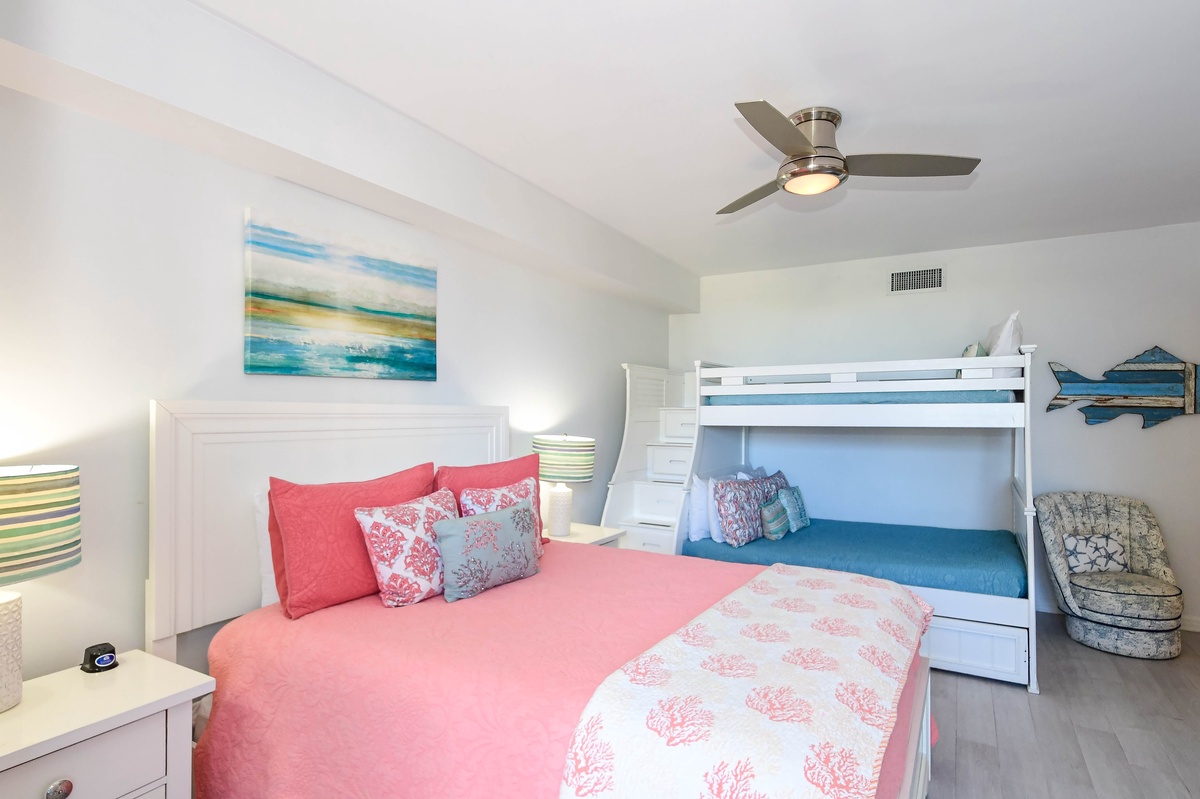 Guest Bedroom: Queen Bed, Twin-Over-Full Bunk Bed and Trundle