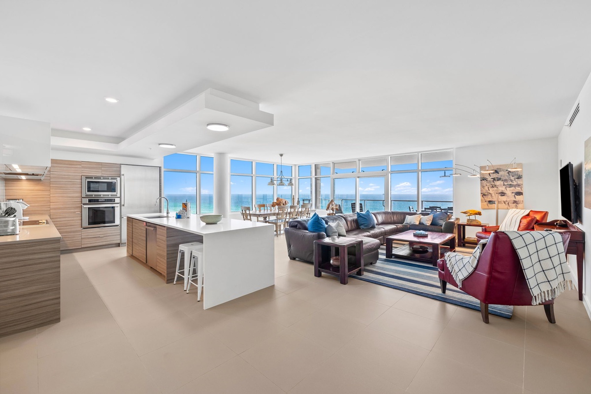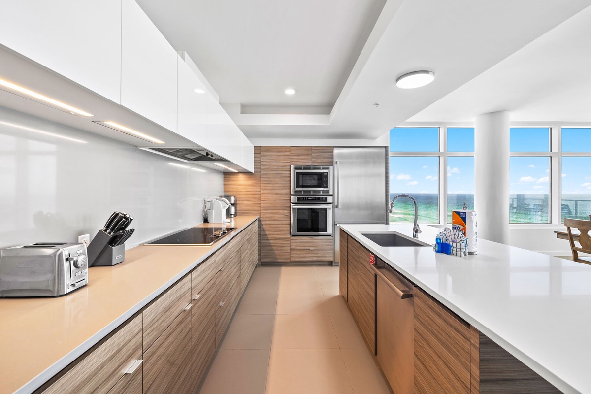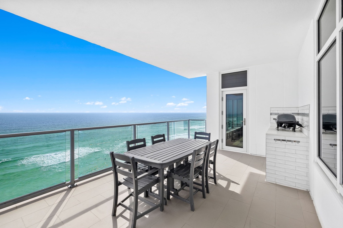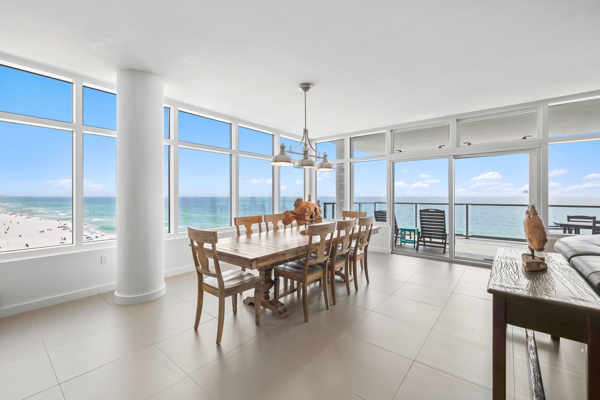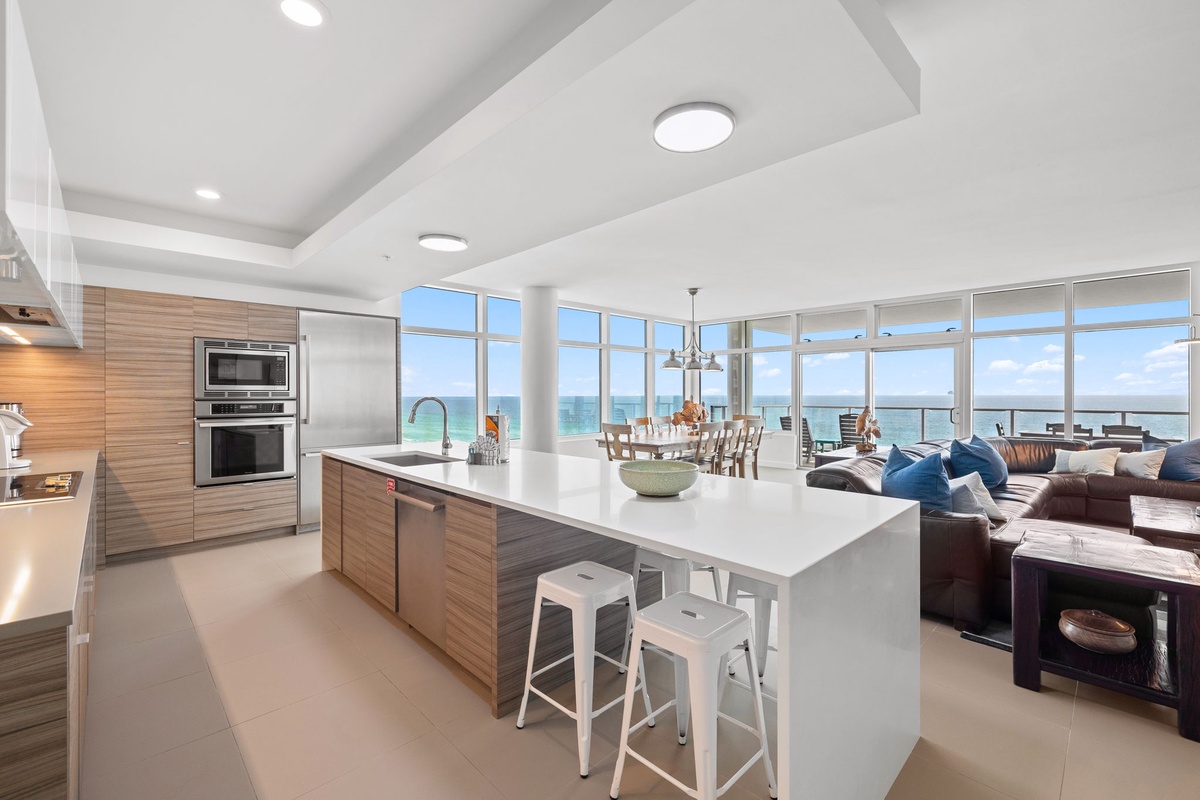 Vacation in luxury at 1900 Ninety-Eight 801. This breathtaking eighth-floor, four-bedroom, three-bathroom condo spans over 2,600 square feet, offering high-end furnishings and exquisite design throughout. The custom kitchen is a chef’s dream, featuring sleek cabinets, marble countertops, and premium stainless-steel appliances. Floor-to-ceiling windows flood the living and dining areas with natural light, creating a seamless connection between indoor and outdoor spaces. Enjoy meals with an Eastern view at the dining table for eight or gather around the kitchen island with additional seating for four. Relax in the spacious living room on a large sectional, ideal for unwinding with your favorite movie and a snack. Step outside to the balcony to take in the fresh salty air, lounge on the comfortable outdoor furniture, or fire up the private grill for dinner.