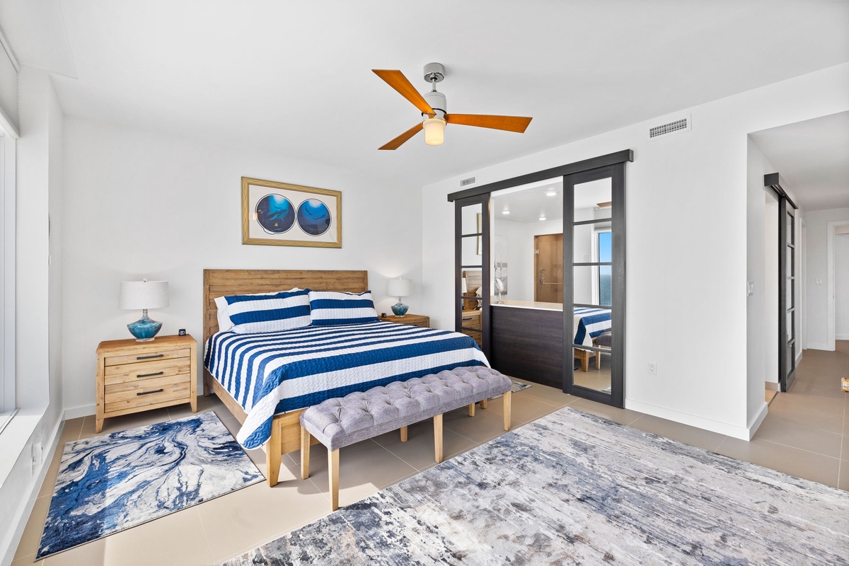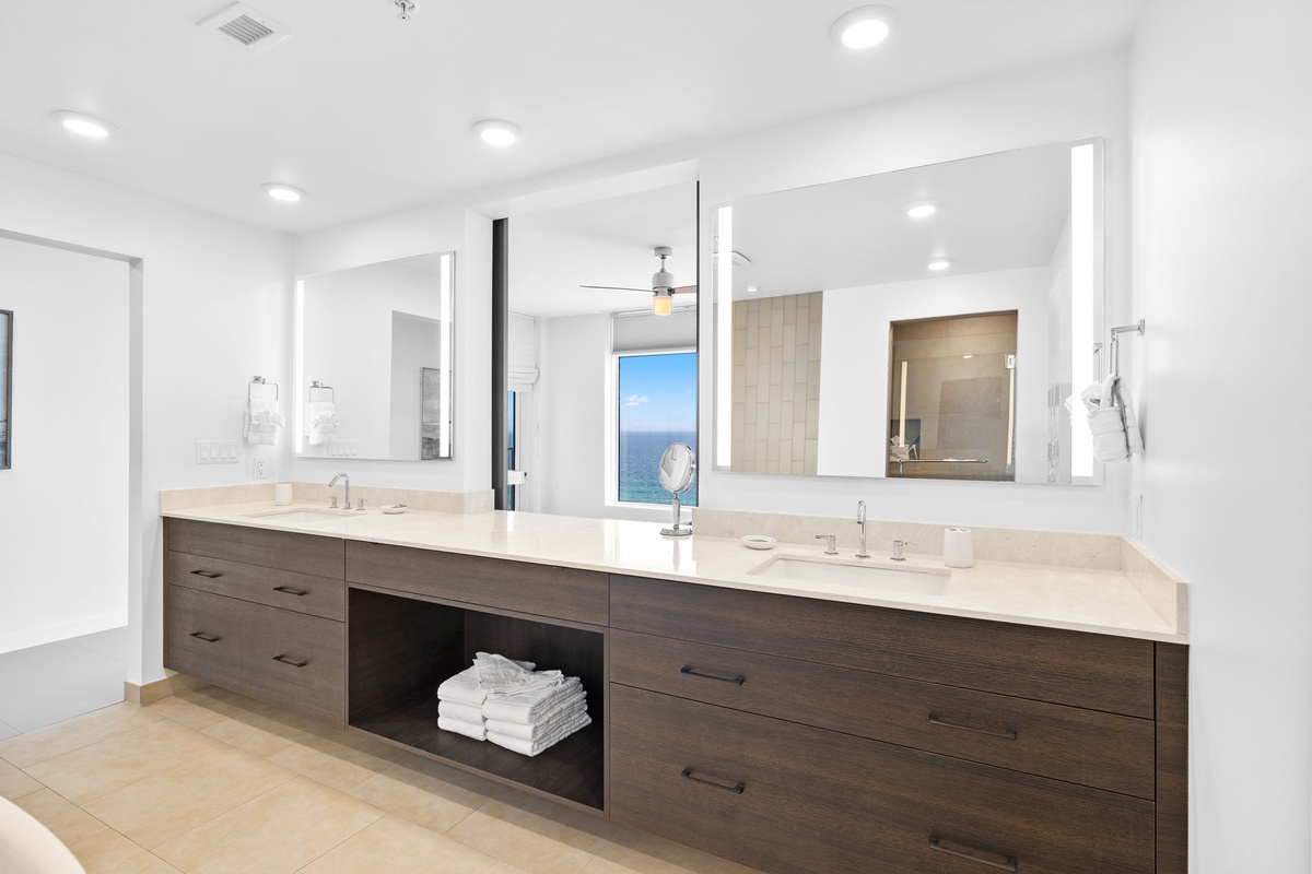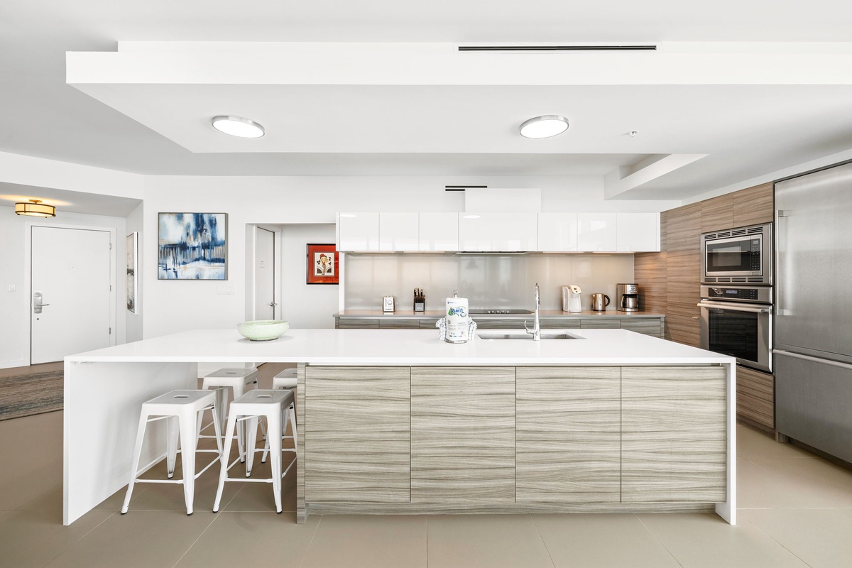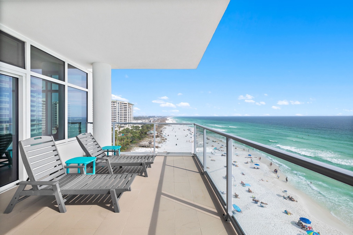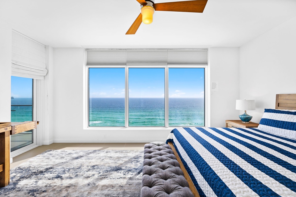 Vacation in luxury at 1900 Ninety-Eight 801. This breathtaking eighth-floor, four-bedroom, three-bathroom condo spans over 2,600 square feet, offering high-end furnishings and exquisite design throughout. The custom kitchen is a chef’s dream, featuring sleek cabinets, marble countertops, and premium stainless-steel appliances. Floor-to-ceiling windows flood the living and dining areas with natural light, creating a seamless connection between indoor and outdoor spaces. Enjoy meals with an Eastern view at the dining table for eight or gather around the kitchen island with additional seating for four. Relax in the spacious living room on a large sectional, ideal for unwinding with your favorite movie and a snack. Step outside to the balcony to take in the fresh salty air, lounge on the comfortable outdoor furniture, or fire up the private grill for dinner.