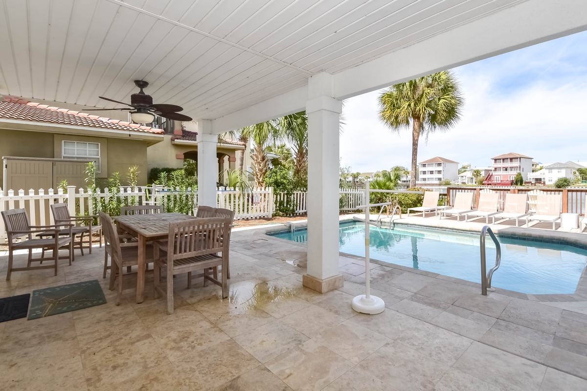 Casa Di Amore was elegantly designed with a beach lifestyle in mind within the Dunes of Destin neighborhood. This five-bedroom five-bathroom offers relaxing lake views while being steps away from the beach. Spend your days in the backyard oasis: floating in the heated pool, unwinding in the spa, or grilling some amazing BBQ. In the sun or under the covered patio, there is plenty of seating to choose from to capture the most of Florida’s beautiful weather.