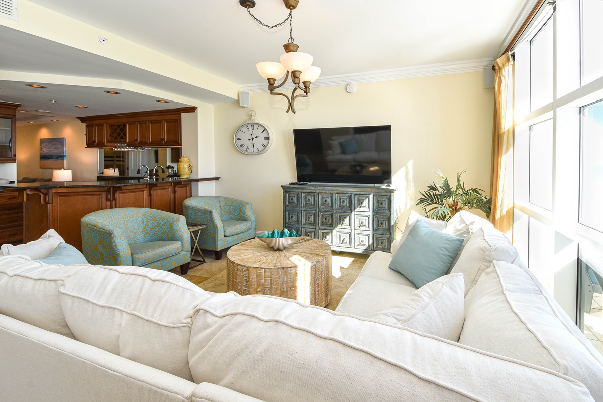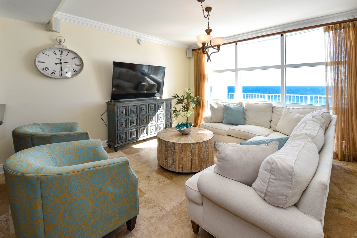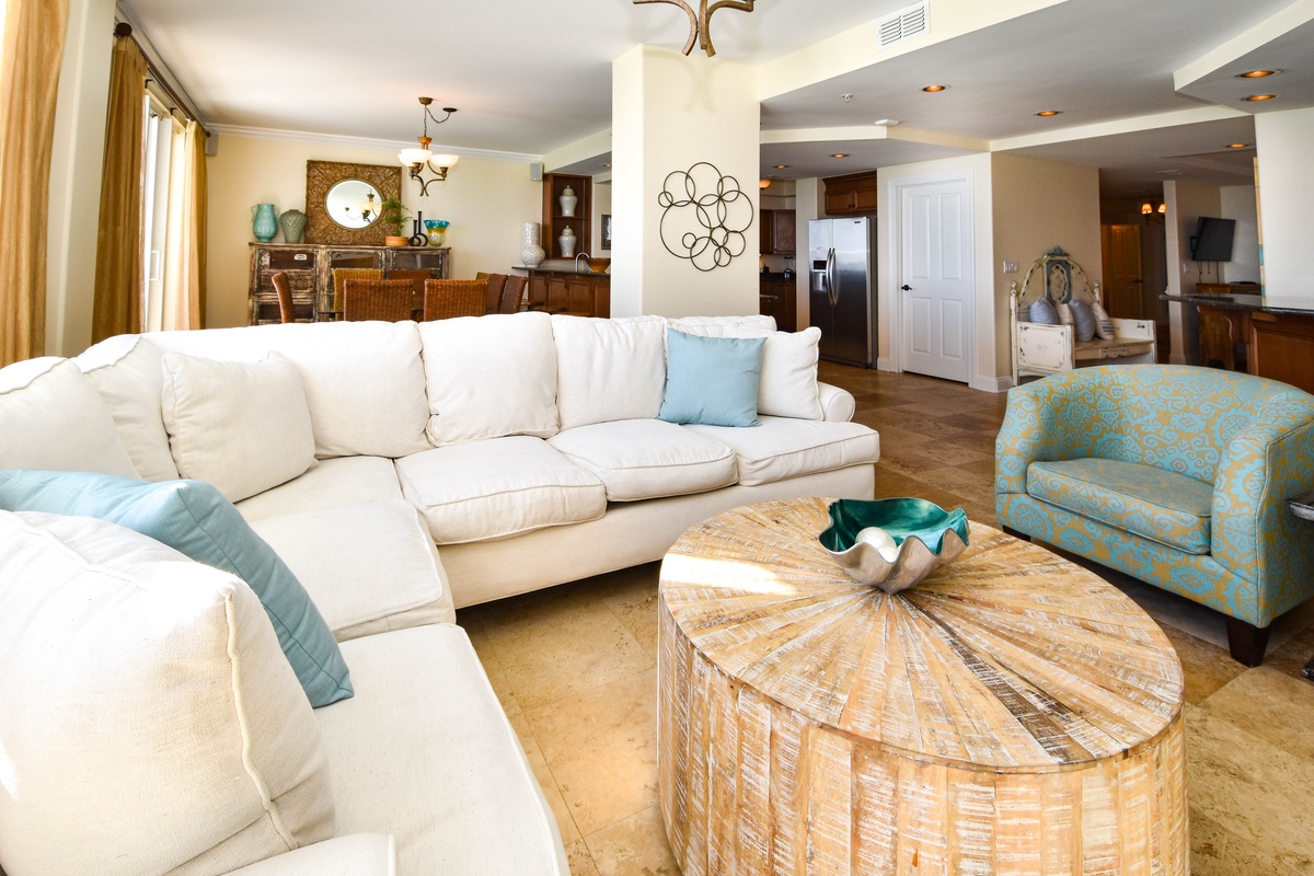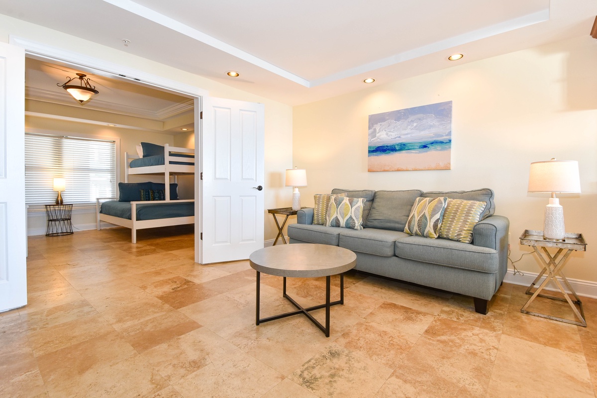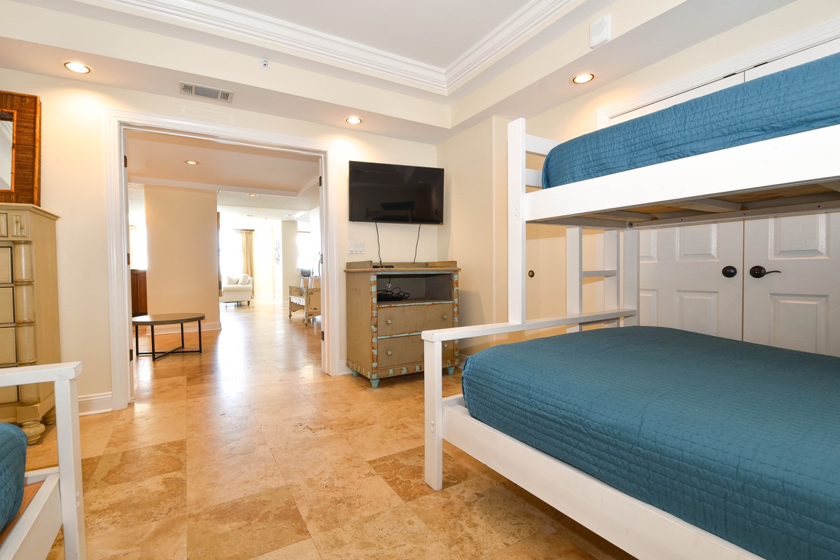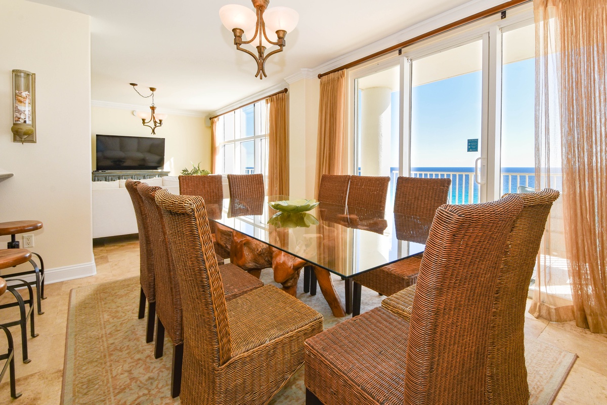 Experience vacation bliss at Majestic Sun 1106A, a luxurious two-story penthouse located on the 11th floor. Offering over 3,300 square feet of living space, this stunning retreat features four spacious bedrooms and three bathrooms, providing ample space for your group to relax in comfort. The gourmet kitchen is a chef’s dream, with expansive granite countertops and top-of-the-line stainless steel appliances, ideal for preparing meals to enjoy at the large dining table, seating ten. Additional seating for six is available at the bar for a more casual dining experience. After a day of fun and adventure, unwind in the cozy living room with your favorite movie or head out to the balcony to enjoy the warm Gulf breezes and your favorite drink. On the first floor, you'll find a full bathroom with a tub/shower combo, a bunk room with two twin-over-queen bunk beds, and an additional living space featuring a sleeper sofa.