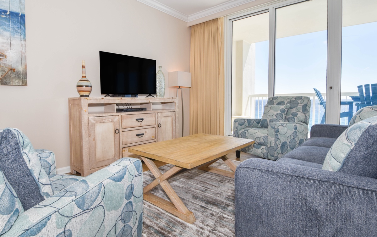 Indulge in a fabulous beach getaway at Silver Beach Towers East 1103. This spacious 11th-floor, three-bedroom, three-bathroom beachfront retreat comfortably accommodates up to eight guests, making it the perfect place to relax and recharge for any group. Discover a spacious open-concept living area with floor-to-ceiling windows that frame the natural light and breathtaking views of Destin’s coastline. The modern layout of the living room sets the stage for quality time, from watching favorite movies on the flat-screen TV to lounging comfortably with family and friends. The fully equipped kitchen features granite countertops, stainless-steel appliances, and plenty of prep space, perfect for cooking up a delicious meal. Enjoy meals at the dining table for six, with additional seating for two at the breakfast bar. The primary suite features a plush king bed, stunning Gulf views, flat-screen TV, and attached bathroom with walk-in shower and soaking tub. The first guest bedroom offers a king bed, TV and attached bathroom with walk-in shower while the second guest bedroom features a queen bed, and TV. For added convenience there is a queen sleeper sofa in the living area, a hallway bathroom with tub/shower combo, washer and dryer, and complimentary WIFI within the condo. From sunrise coffee on the balcony to relaxing evening sunsets over the Gulf, Silver Beach Towers East 1103 provides the ultimate Destin beach experience. Reserve your stay today and make this stunning condo your next unforgettable vacation destination.