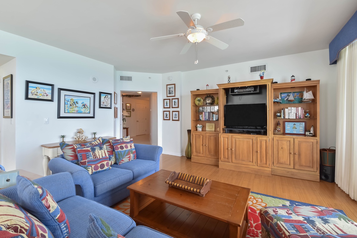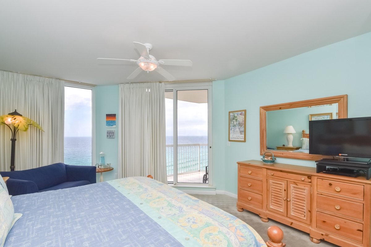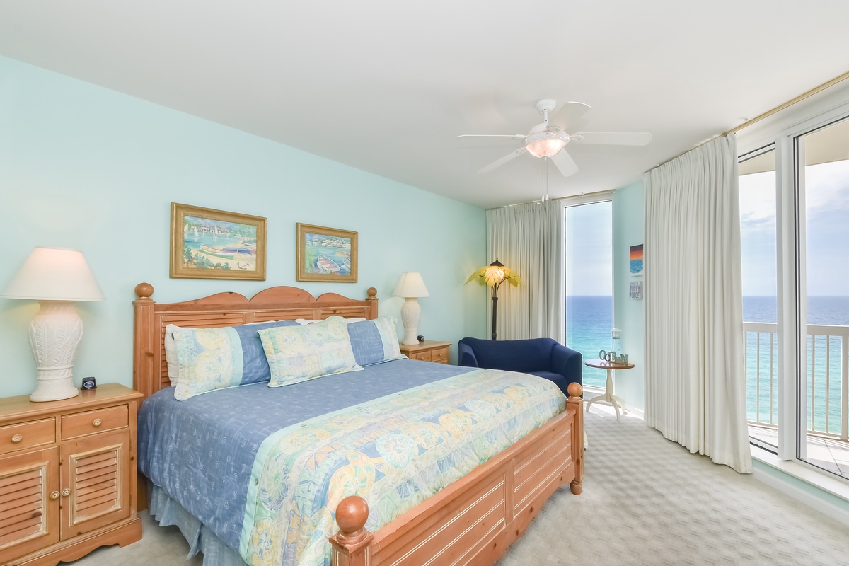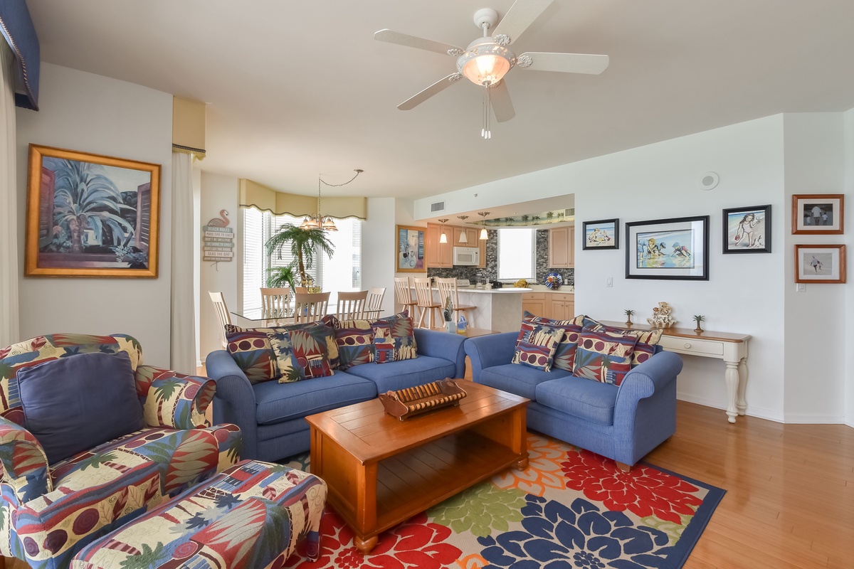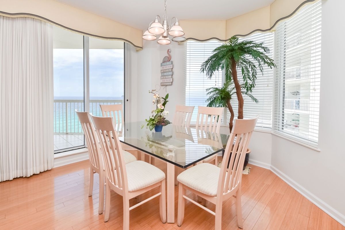 Welcome to Silver Beach Towers East 1206, a 12th-floor beachfront condo in Destin, Florida. This spacious three-bedroom, three-bathroom vacation rental comfortably accommodates up to eight guests, making it the perfect getaway for families and friends looking to enjoy the best of the Emerald Coast. Step inside and soak in the sunshine, the open-concept living area features floor-to-ceiling windows that fill the space with natural light and showcase sweeping views of Destin’s sparkling coastline. The inviting living room is ideal for relaxing after a day at the beach, whether you’re watching a favorite movie on the flat-screen TV or enjoying game night with loved ones. The fully equipped kitchen includes plenty of counter space, perfect for preparing home-cooked meals. Share dinner around the dining table for six or grab a quick bite at the breakfast bar with seating for three. The primary suite offers a king bed, Gulf-front views, flat-screen TV, and a private ensuite featuring a walk-in shower and soaking tub. The first guest bedroom includes a queen bed, flat-screen TV, and an attached bathroom with a tub/shower combo. The second guest bedroom is perfect for kids, with a twin-over-twin bunk bed, twin daybed with trundle, and flat-screen TV. Both guest bedrooms offer access to a private north-facing balcony, accessible only from the bedrooms. For added convenience there is a hallway bathroom with a walk-in shower, washer and dryer, and complimentary Wi-Fi within the condo. Enjoy the best of Destin’s white-sand beaches, crystal-clear waters, and family-friendly fun all just steps from your door at Silver Beach Towers East 1206.
