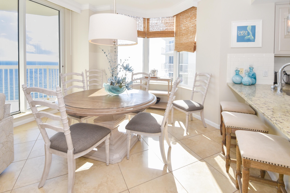 Step into your beachfront escape at Silver Beach Towers East 1406, a stunning fourteenth-floor, three-bedroom, three-bathroom retreat overlooking the emerald waters of the Gulf. Perfectly positioned in the heart of Destin, this premium end-unit condo offers additional square footage, a larger beachfront balcony, and sweeping panoramic views that set the stage for a truly memorable coastal getaway. Step inside to an expansive open-concept living area, thoughtfully designed with extra space for gathering and relaxation. Comfortable seating surrounds a large flat-screen TV, while the cozy sofa converts into a queen sleeper to accommodate larger groups. Floor-to-ceiling windows line the south wall, filling the space with natural light and opening directly onto the furnished beachfront balcony, perfect for sunrise coffee and salty Gulf breezes. The dining area offers seating for six, with three additional seats at the breakfast bar. The fully equipped kitchen features full-size stainless-steel appliances along with all the cookware and dishware needed to prepare meals with ease. The primary suite is a serene coastal retreat featuring a king bed, walk-in closet, flat-screen TV, and private access to the beachfront balcony. The en-suite bathroom provides spa-like comfort with a soaking tub, tiled walk-in shower, and double vanity. The first guest bedroom includes a queen bed, flat-screen TV, and private access to the north balcony. The second guest bedroom features two full beds, a flat-screen TV, and access to the north balcony overlooking the greater Destin area. These bedrooms share a full bathroom, while an additional full guest bathroom is conveniently located just steps from the living area. A full-size washer and dryer and complimentary Wi-Fi add extra convenience throughout your stay. From sunrise mornings on the balcony to evenings spent together by the Gulf, Silver Beach Towers East 1406 is the perfect place to turn your Destin vacation dreams into reality.