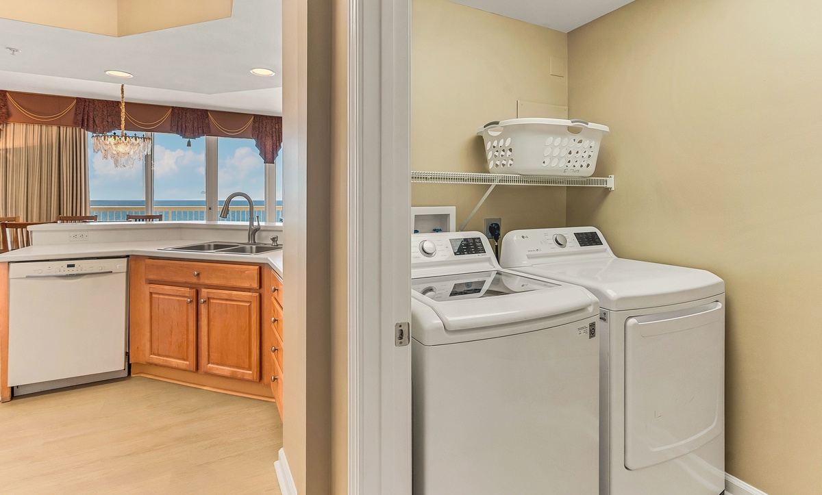 The condo is furnished with a washer and dryer.