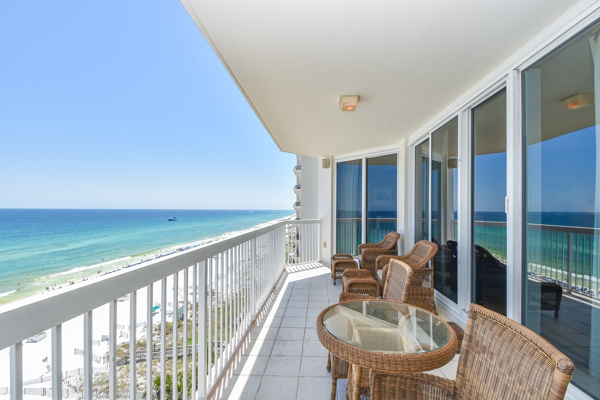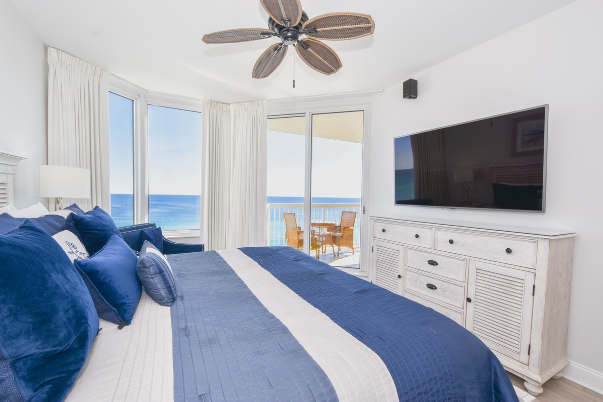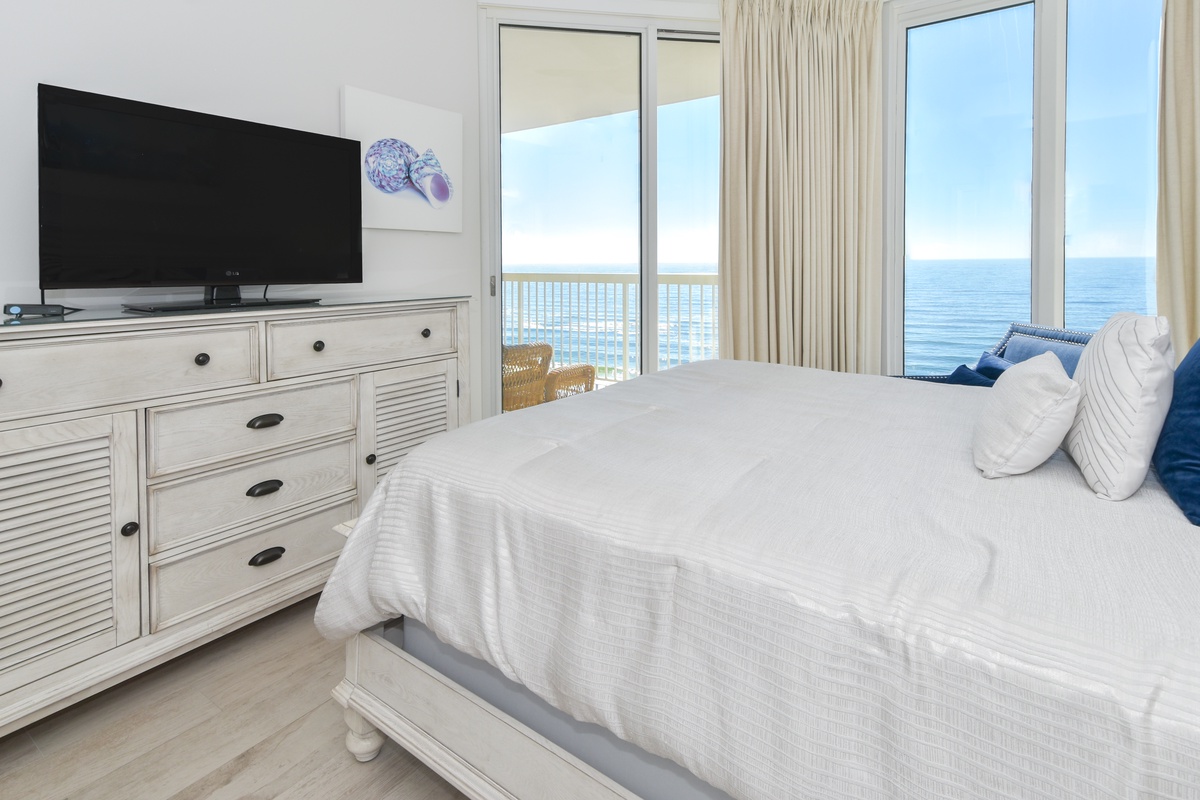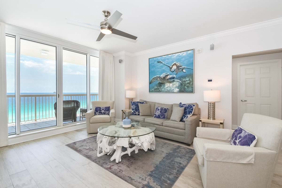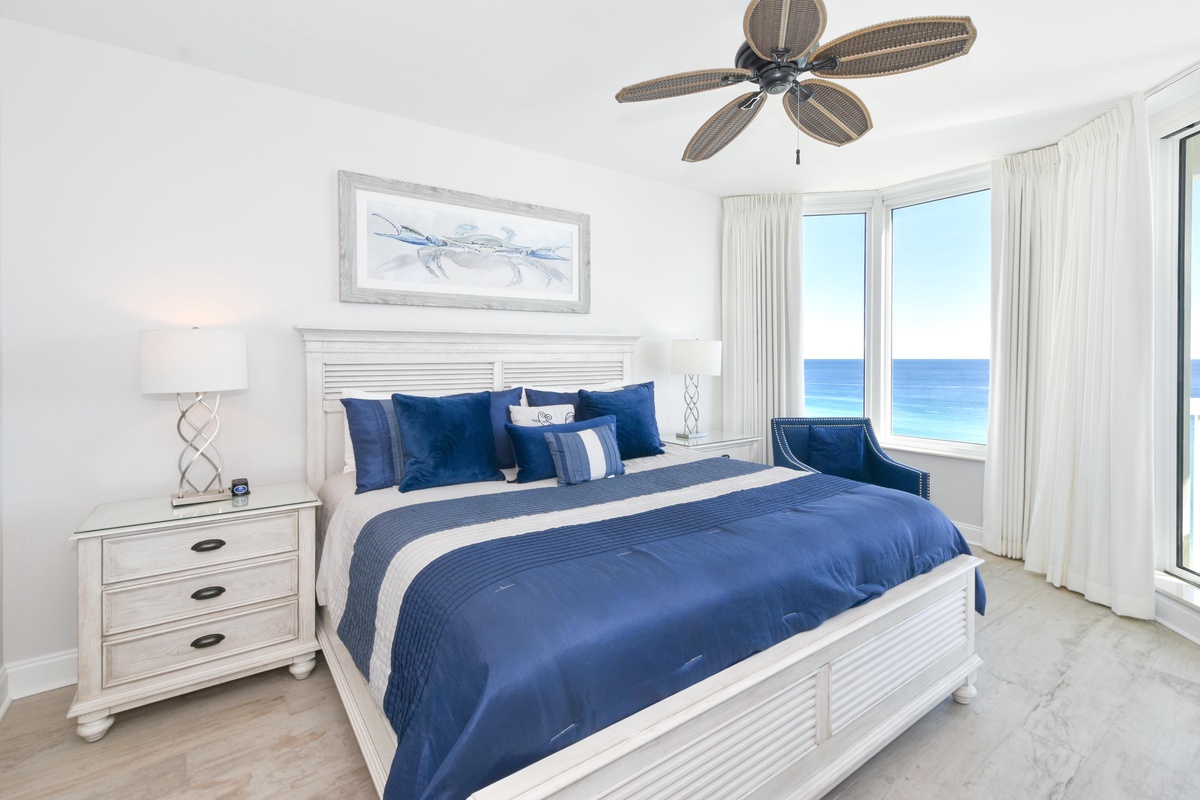 Welcome to Silver Beach Towers West 1005! This beautifully appointed beachfront condo features two bedrooms and two bathrooms to comfortably sleep up to six guests. An inviting open-concept living area with floor-to-ceiling windows offers breathtaking views of the Gulf. Relax with family and friends around the large, wall-mounted flat-screen TV with surround sound, or step out onto the furnished tenth-floor balcony to soak in the sights and sounds of Destin’s sugar-white sand and emerald waters. Whip up a delicious meal in the fully equipped kitchen that features stainless steel appliances, a double oven, and all the cookware and dishware you’ll need. Enjoy meals and conversations around the dining table that seats four, with additional seating for two at the breakfast bar. A laundry room just off the kitchen is furnished with a full-size washer and dryer for your convenience. Retreat into the primary suite and find a king bed, walk-in closet, wall-mounted flat-screen TV, and private balcony access with stunning Gulf views. The primary bathroom offers a soaker tub, a spacious tiled walk-in shower, and a double vanity. The guest bedroom features a queen bed, flat-screen TV, and private access to the beachfront balcony. Just steps away, a full guest bathroom with a walk-in shower adds ease and comfort. For added convenience, this condo offers complimentary Wi-Fi and an in-unit washer and dryer. The living area also includes a queen sleeper sofa for additional sleeping arrangements. Whether you’re lounging by one of the two beachfront pools, exploring Destin’s world-class dining and attractions, or simply watching the sunsets from your balcony, Silver Beach Towers West 1005 is the perfect place to call home for your next beach vacation.