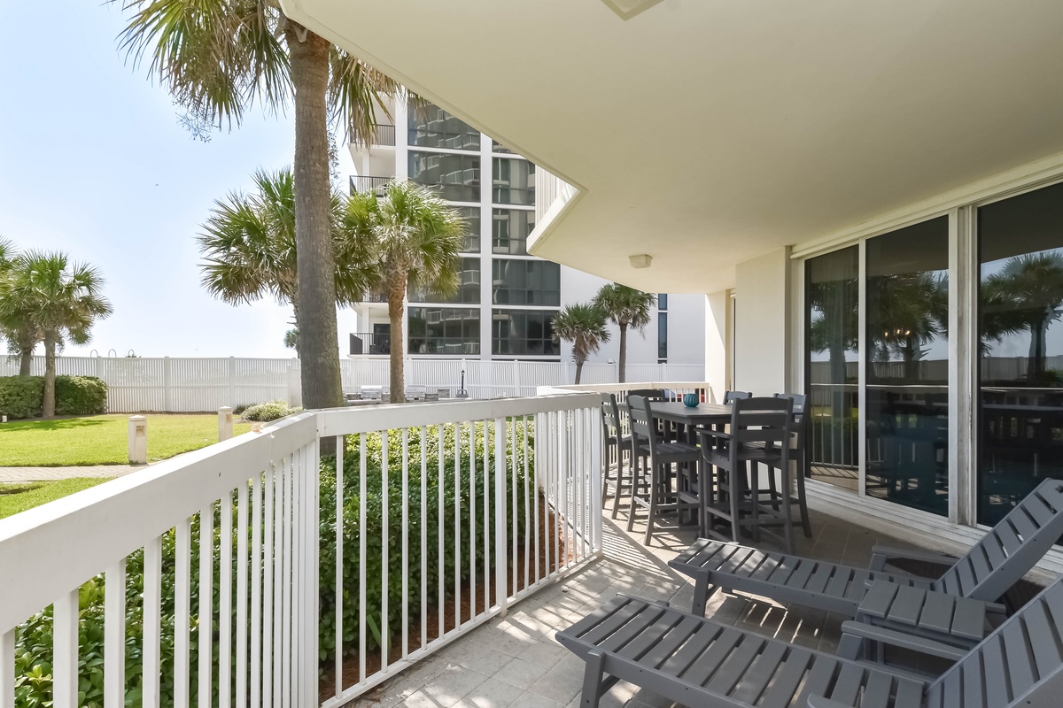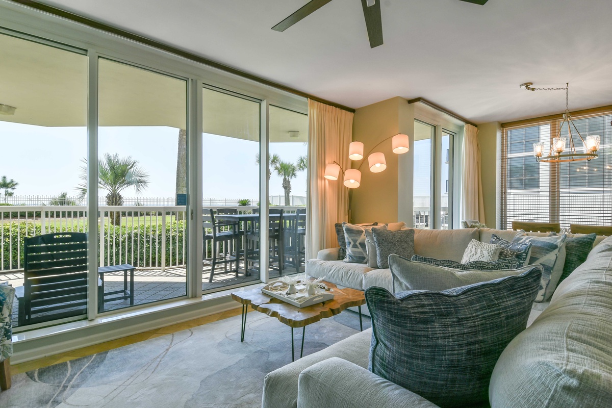 Welcome to Silver Beach Towers West 106! This ground-floor beachfront condo features two bedrooms, two bathrooms, and a cozy bunk area, offering plenty of space for up to six guests. Relax in the spacious living area, complete with a 65-inch Smart TV and floor-to-ceiling windows that open directly to the furnished beachfront patio. From here, you’ll enjoy easy access to the pool deck, community grills, and the resort’s private beach. The dining table seats six guests, with two additional seats at the breakfast bar. The fully equipped kitchen features stainless steel appliances, granite countertops, and all the cookware and dishware you’ll need to enjoy meals together. A laundry room with a full-size washer and dryer plus a utility sink adds to your convenience during your stay. The primary suite features a king bed, Smart TV, large closet, and private access to the patio. The en-suite bathroom includes a jacuzzi bathtub, spacious walk-in shower, and dual vanity. Just off the primary suite, a cozy bunk area with twin bunk beds and Smart TVs provides the perfect hideaway for children. The guest bedroom offers two queen beds, a Smart TV, and a private bathroom with a walk-in shower. For added convenience, this condo offers complimentary Wi-Fi, an in-unit washer and dryer, and direct access to the pool deck and beach. Whether you’re lounging by one of the two beachfront pools, exploring Destin’s world-class dining and attractions, or simply watching the sunsets from your balcony, Silver Beach Towers West 106 is the perfect place to call home for your next beach vacation.