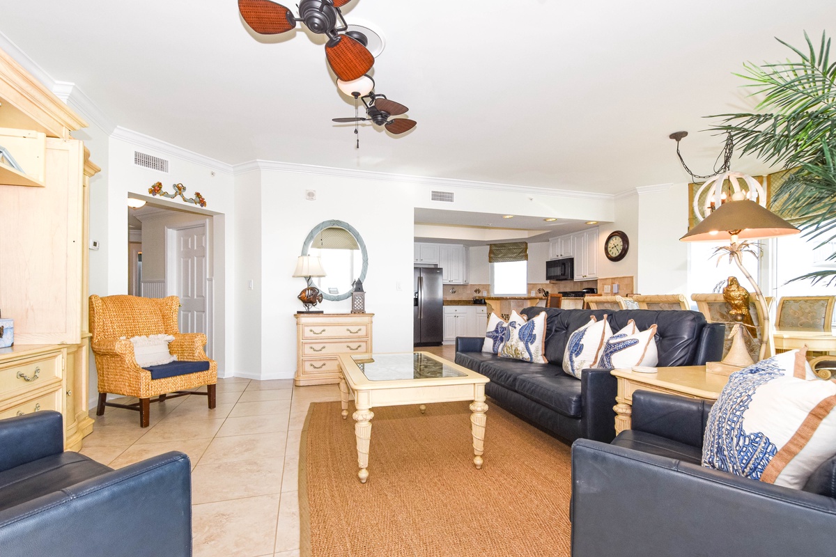 Welcome to Silver Beach Towers West 1501, your beachfront escape in the heart of Destin, Florida! Located on the 15th floor of Silver Beach Towers Resort, this spacious three-bedroom, three-bathroom vacation rental offers panoramic views of the Gulf and a relaxing coastal ambiance, perfect for your next Emerald Coast getaway. Inside, you’ll find travertine tile flooring throughout and an inviting open-concept living space designed for comfort and connection. Gather with family and friends around the large flat-screen TV, or simply relax and soak in the view through floor-to-ceiling windows that lead directly to the furnished Gulf-front balcony. The fully equipped kitchen features full-size stainless steel appliances, granite countertops, a decorative tile backsplash, and all the cookware and dishware needed to prepare delicious meals. The dining area seats eight, offering the perfect setting for sharing meals or planning the day’s adventures. Just off the kitchen is a laundry room with a full-size washer and dryer for added convenience. The Gulf-front primary suite is a true retreat featuring a king bed, flat-screen TV, walk-in closet, and private access to the beachfront balcony. The attached primary bathroom includes a jetted soaking tub, a tiled walk-in shower with a bench seat, and a double vanity. The first guest bedroom offers a queen bed, flat-screen TV, and private access to the north-facing balcony with views of Destin’s scenic skyline. This bedroom includes a private en-suite bathroom with a tub/shower combination. The second guest bedroom is furnished with two full beds, a flat-screen TV, and also features private access to the north balcony. A third full bathroom with a walk-in shower is conveniently located just steps from the second guest bedroom and the main living area. For added convenience, this beachfront condo includes a full-size washer and dryer and secure Wi-Fi throughout the condo. Whether you’re building sandcastles, chasing sunsets, or simply unwinding by the emerald waters, Silver Beach Towers West 1406 is the ultimate Destin beach vacation rental. Book your stay today and make unforgettable memories on Florida’s Emerald Coast!