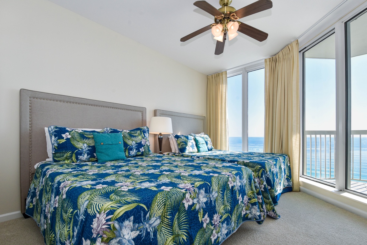 Welcome to Silver Beach Towers West 1602, a comfortable and stylish two-bedroom, two-bathroom beachfront condo on the 16th floor, offering sweeping views of the Gulf. This spacious Destin retreat features an open-concept living area with floor-to-ceiling windows, a fully equipped kitchen with stainless steel appliances, and a large beachfront balcony perfect for enjoying the coastal breeze. The primary suite includes a king bed, private balcony access, and an en-suite bathroom with a soaking tub and walk-in shower. The guest bedroom offers two queen beds, shared balcony access, and a nearby full bathroom. For added convenience, the condo includes complimentary Wi-Fi, an in-unit washer and dryer, and additional sleeping accommodations with a queen sleeper sofa in the living area. Guests also enjoy access to resort amenities such as beachfront pools, hot tubs, tennis courts, and direct beach access, providing everything needed for the perfect Destin getaway.