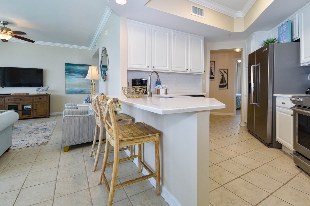 This professionally managed Destin vacation rental is brought to you by Compass Resorts, a locally owned and operated company dedicated to delivering consistent, exceptional quality. Your vacation is our priority, and we strive to exceed your expectations every step of the way. To ensure convenience and comfort, we provide a welcome kit of essential amenities such as trash can liners, small dishwasher detergent, dish soap, dish sponge, a roll of paper towels, laundry detergent, bathroom paper, and facial soap for our guests. Guests will also receive a complimentary SOJO amenity kit with shampoo, conditioner, and body wash in Compass’s own signature scent. For longer stays, we recommend purchasing additional supplies to meet your specific needs.