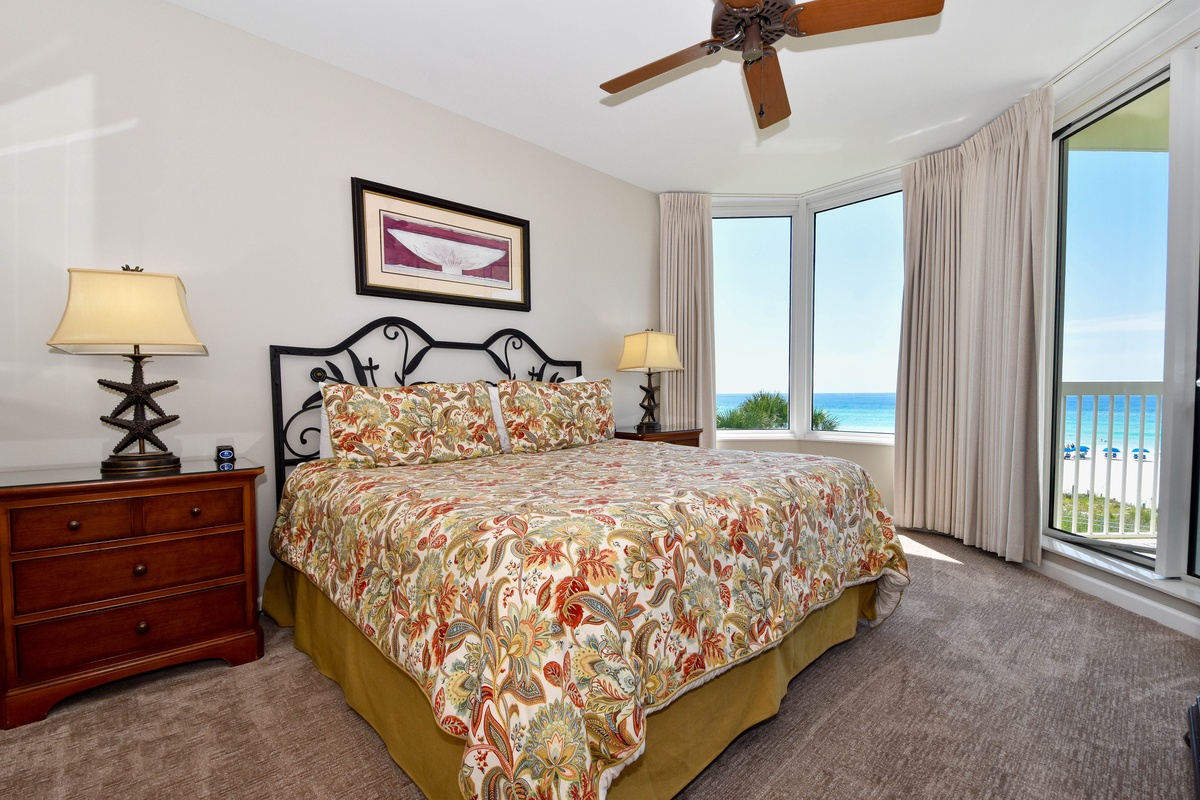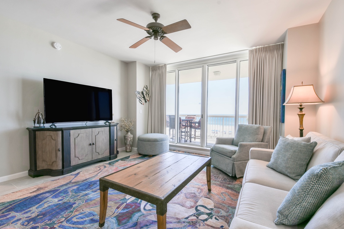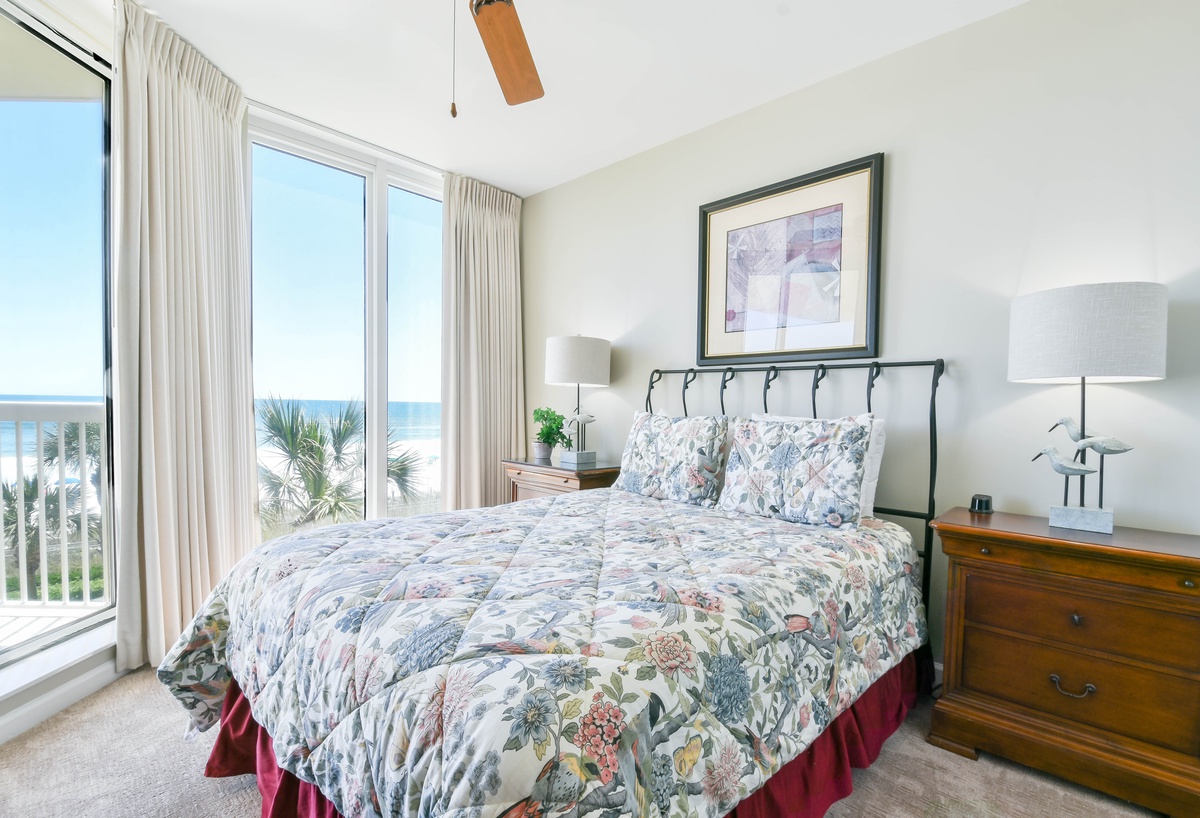 Relax at Silver Beach Towers West 305, a welcoming two-bedroom, two-bathroom beachfront retreat located on the third floor. Perfectly positioned in the heart of Destin, this condo offers breathtaking Gulf views and easy access to the area’s best dining, shopping, and sightseeing. Step inside to an inviting open-concept living area designed for comfort and connection. The spacious living area is perfect for gathering with family and friends to enjoy movie nights on the large flat-screen TV, and the couch easily converts to a queen sleeper sofa to accommodate additional guests. Floor-to-ceiling windows along the south wall open directly onto the furnished beachfront balcony, creating a seamless indoor-outdoor experience while showcasing stunning Gulf views. The fully equipped kitchen features full-size stainless-steel appliances, custom cabinetry, granite countertops, and all the cookware and dishware needed to prepare meals with ease. Enjoy meals at the dining table with seating for four, plus two additional seats at the breakfast bar. The primary suite offers a peaceful retreat with a king bed, flat-screen TV, walk-in closet, and access to the beachfront balcony. The en-suite bathroom features a large soaking tub, a walk-in shower with a built-in bench, and a double vanity. The guest bedroom includes a queen bed, flat-screen TV, and access to the beachfront balcony. A full guest bathroom with a walk-in shower is conveniently located just steps from both the guest bedroom and the living area. For added convenience, this condo includes complimentary Wi-Fi, a queen sleeper sofa, and an in-unit washer and dryer, making longer stays effortless. From morning coffee overlooking the Gulf to relaxing evenings on the balcony, Silver Beach Towers West 305 is the perfect place to unwind and create lasting beach memories.