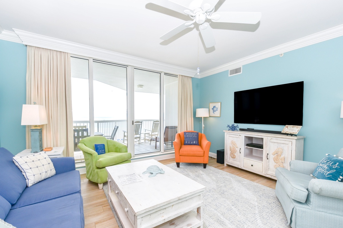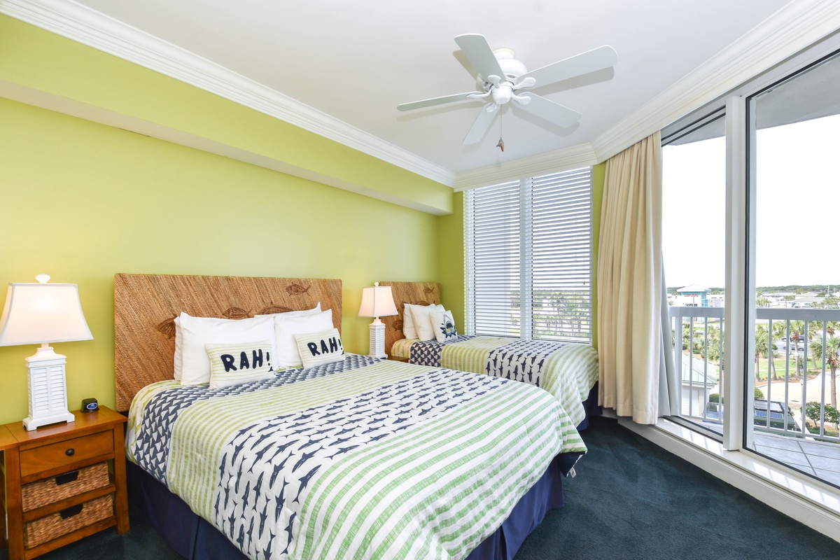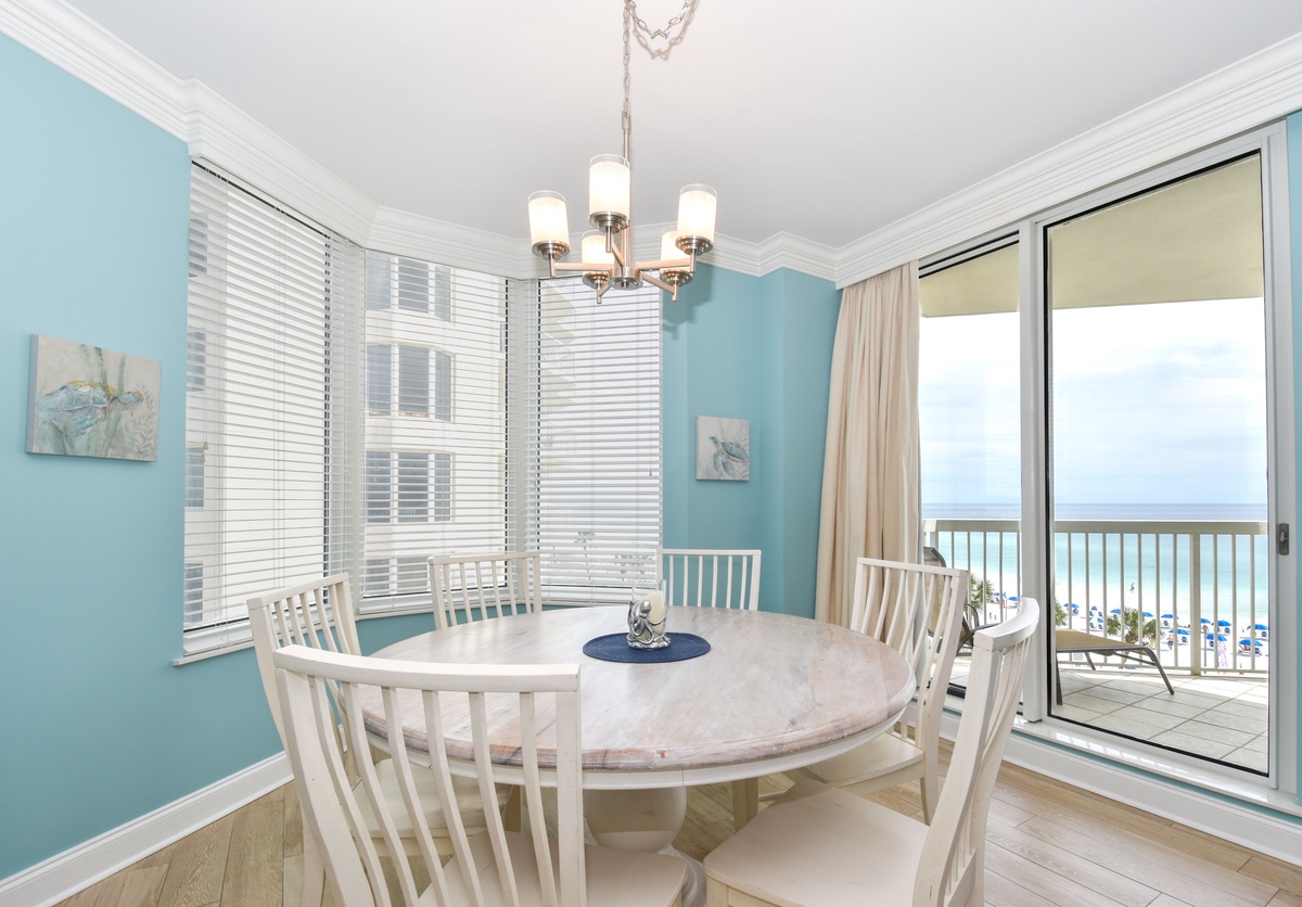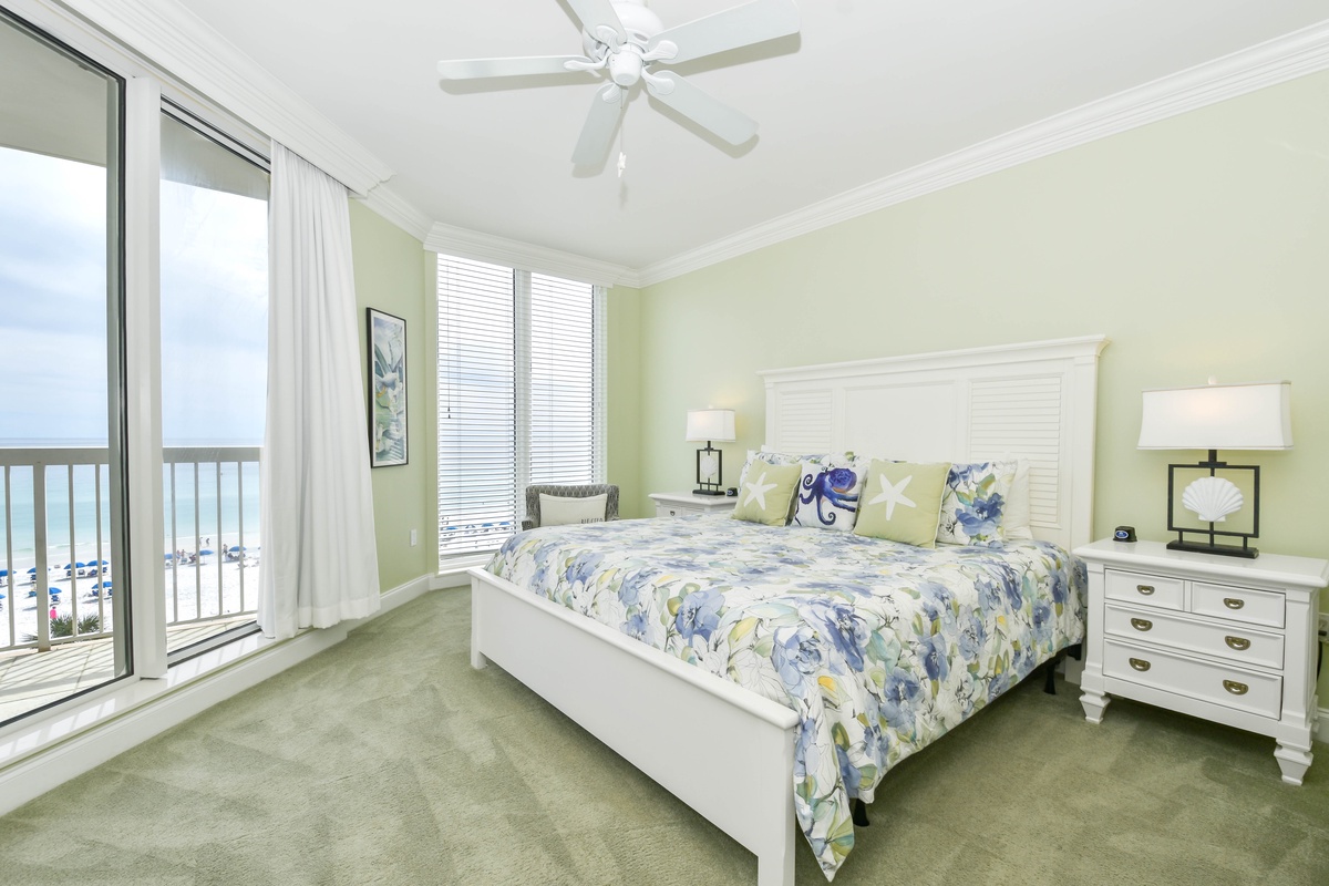 Welcome to Silver Beach Towers West 501, a vibrant three-bedroom, three-bathroom beachfront retreat located on the fifth floor. Perfectly positioned in the heart of Destin, this condo offers breathtaking Gulf views along with easy access to the area’s best dining, shopping, and sightseeing. Step inside to a bright, coastal-inspired open-concept living area designed for relaxing and reconnecting. The spacious living room is ideal for gathering with family and friends to enjoy movie nights on the large flat-screen TV. Floor-to-ceiling windows along the south wall open directly onto the furnished beachfront balcony, filling the space with natural light and stunning Gulf views. The fully equipped kitchen features full-size stainless-steel appliances and includes all the cookware and dishware needed to prepare meals with ease. Enjoy dining together at the table with seating for six, plus four additional seats at the breakfast bar, perfect for casual meals or morning coffee. The primary suite offers a relaxing retreat with a king bed, flat-screen TV, walk-in closet, and access to the beachfront balcony. The en-suite bathroom features a jetted soaking tub, tiled walk-in shower, and double vanity. The first guest bedroom includes a queen bed and a twin bed, a flat-screen TV, access to the north balcony, and its own en-suite bathroom with a tub/shower combination. The second guest bedroom features a king bed, TV, and private access to the north balcony. A full guest bathroom with a walk-in shower is conveniently located just steps from the living area and second guest bedroom. For added convenience, this condo includes complimentary Wi-Fi, a queen sleeper sofa, and an in-unit washer and dryer, making longer stays comfortable and effortless. From sunrise views over the Gulf to relaxing evenings on the balcony, Silver Beach Towers West 501 is the perfect place to unwind and create lasting beach memories.