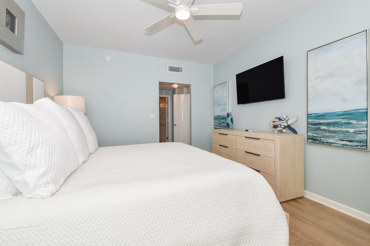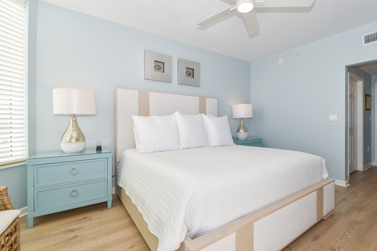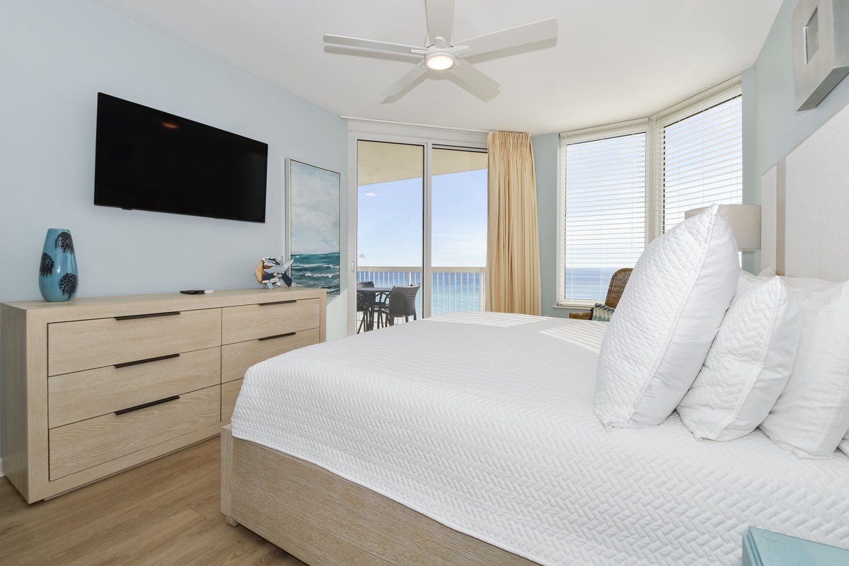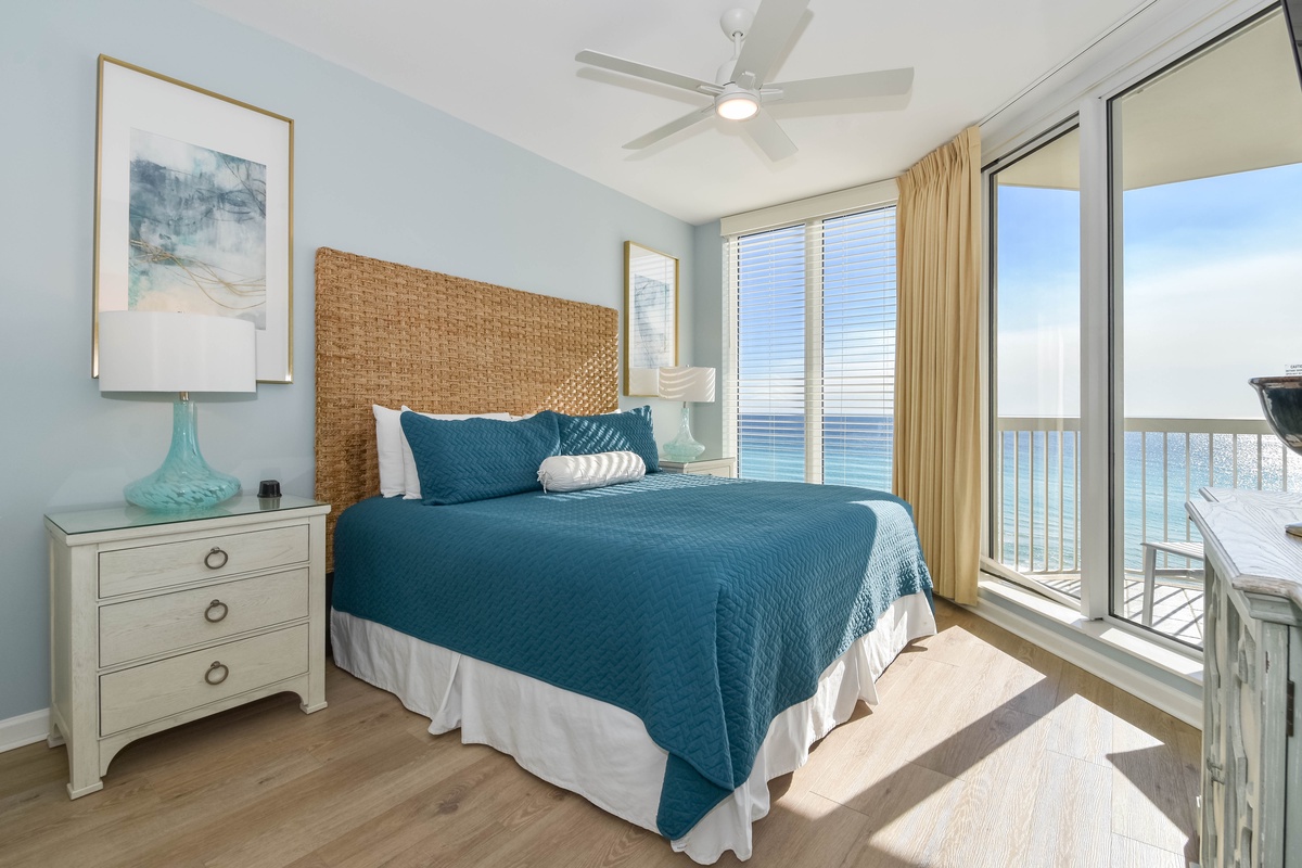 Relax in Silver Beach Towers West 702, a beautifully appointed two-bedroom, two-bathroom Destin beachfront vacation rental located on the seventh floor. Designed with contemporary coastal furniture and soft hues of blue throughout, this Gulf-front condo creates a calming, beach-inspired atmosphere while showcasing stunning Gulf views from the living area, bedrooms, and private beachfront balcony. Floor-to-ceiling windows along the south wall open directly onto the furnished balcony, filling the space with natural light and creating a seamless indoor-outdoor living experience. The bright, open living area features clean-lined contemporary coastal furnishings, soothing blue accents, and a large flat-screen TV, perfect for unwinding after a day on the beach or gathering with family and friends. The fully equipped kitchen offers full-size stainless-steel appliances, along with all the cookware and dishware needed to prepare meals with ease. Adjacent to the kitchen, the dining area comfortably seats four, with two additional seats at the breakfast bar. Unwind in the primary bedroom, a peaceful coastal retreat features a plush king bed, flat-screen TV, walk-in closet, and direct access to the beachfront balcony. The primary bathroom includes a bathtub, tiled walk-in shower with bench, and a double vanity. The guest bedroom also offers a plush king bed, flat-screen TV, and balcony access, continuing the home’s relaxed coastal feel. Additional sleeping accommodations include a sleeper sofa in the living area, allowing the condo to comfortably sleep up to six guests. A guest bathroom with a walk-in shower is conveniently located near the guest bedroom and living area. Enjoy complimentary Wi-Fi, an in-unit washer and dryer, and all the comforts needed for an extended stay. Whether you’re planning a family getaway or a relaxing escape, Silver Beach Towers West 702 offers the ideal blend of style, comfort, and location among Destin beachfront vacation rentals.