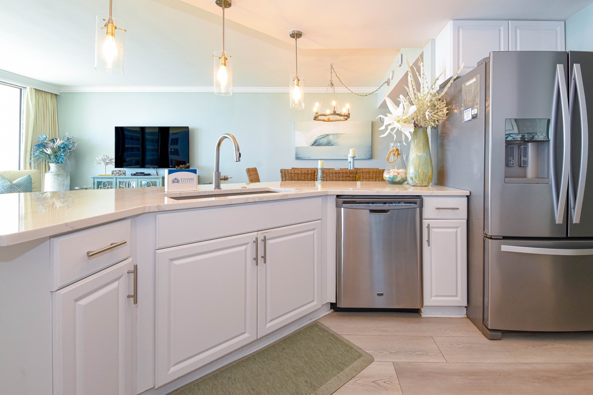 This professionally managed Destin vacation rental is brought to you by Compass Resorts, a locally owned and operated company dedicated to delivering consistent, exceptional quality. Your vacation is our priority, and we strive to exceed your expectations every step of the way. To ensure convenience and comfort, we provide a welcome kit of essential amenities such as trash can liners, small dishwasher detergent, dish soap, dish sponge, a roll of paper towels, laundry detergent, bathroom paper, and facial soap for our guests. For longer stays, we recommend purchasing additional supplies to meet your specific needs.