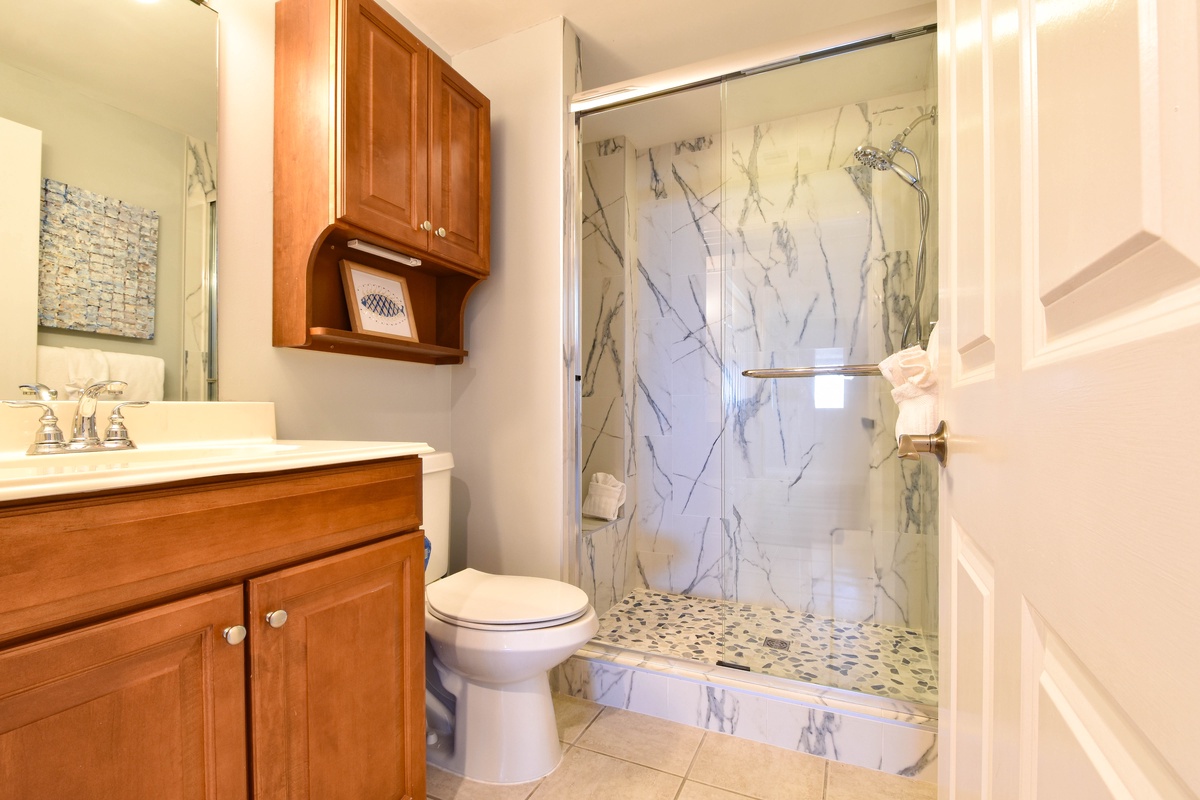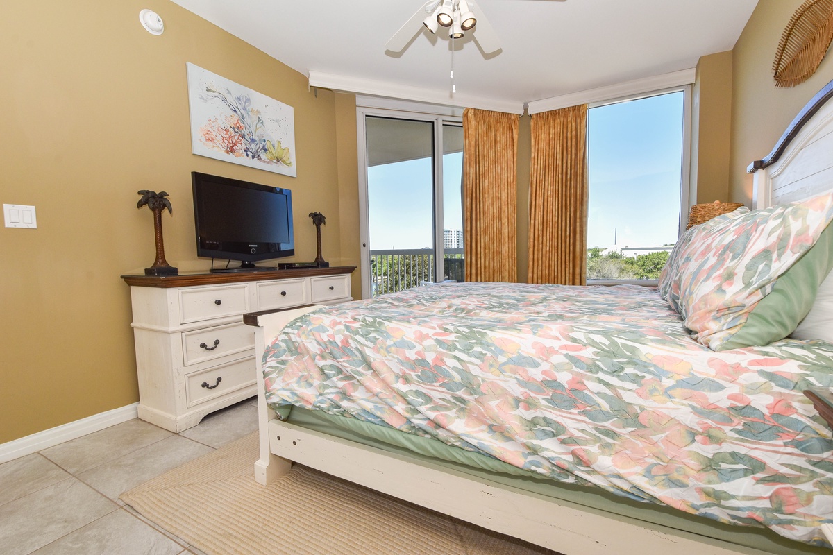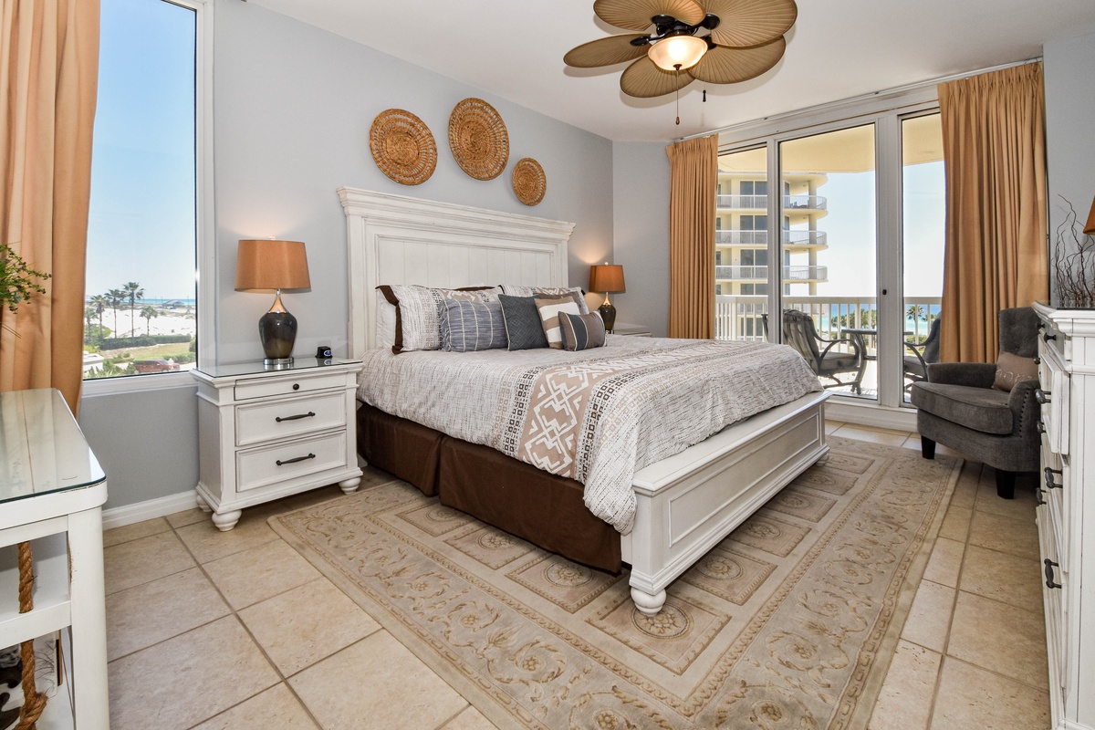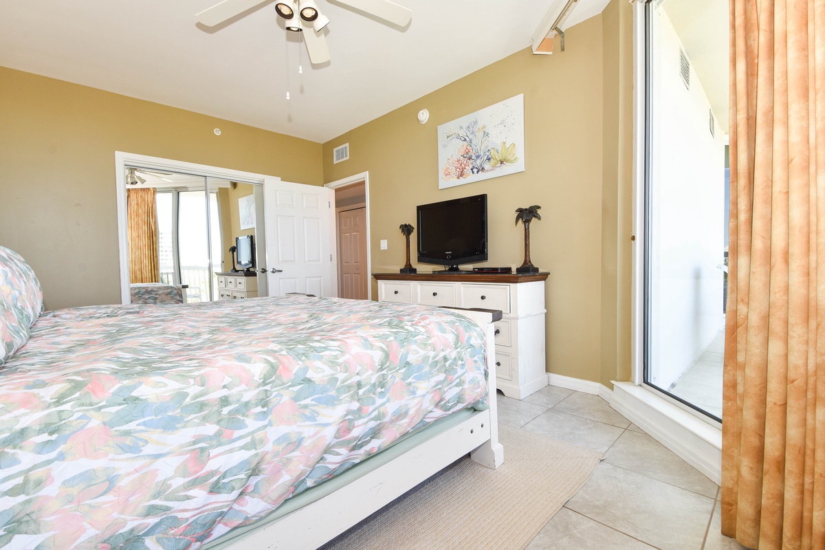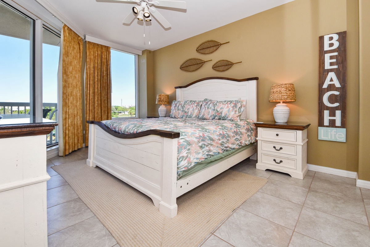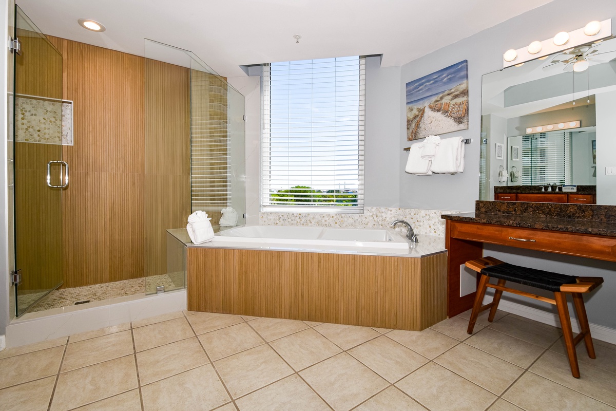 The Master bedroom boasts a large king-sized bed, private access to the beach-facing balcony, and a flat-screen TV. The private ensuite bathroom features a large soaker tub, tiled walk-in shower, and a separate vanity that's perfect for doing your makeup. The first guest bedroom has a king-sized bed, a large TV, and access to the north-facing balcony. The ensuite bathroom features a tiled walk-in shower and plenty of storage space. The second guest bedroom is fitted with two full-sized beds, a TV, and access to the north-facing private balcony. The adjoining bathroom features a shower-tub combo and large vanity.