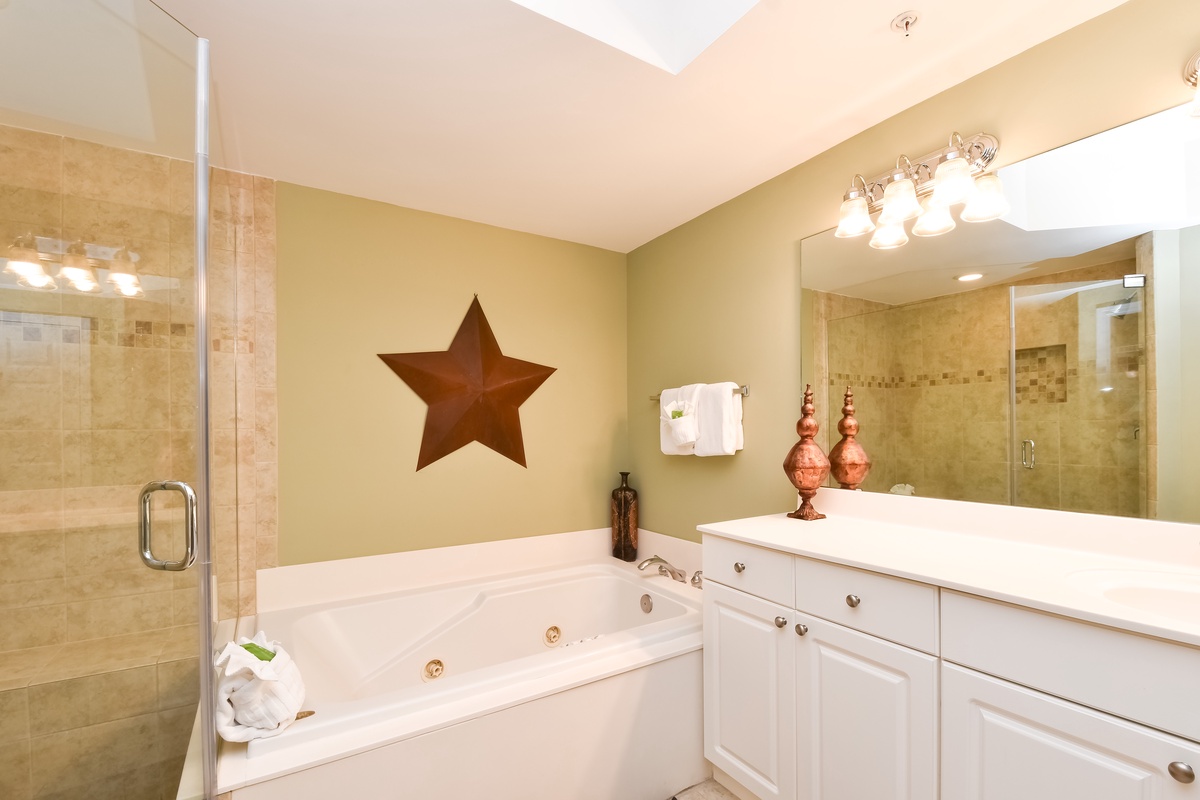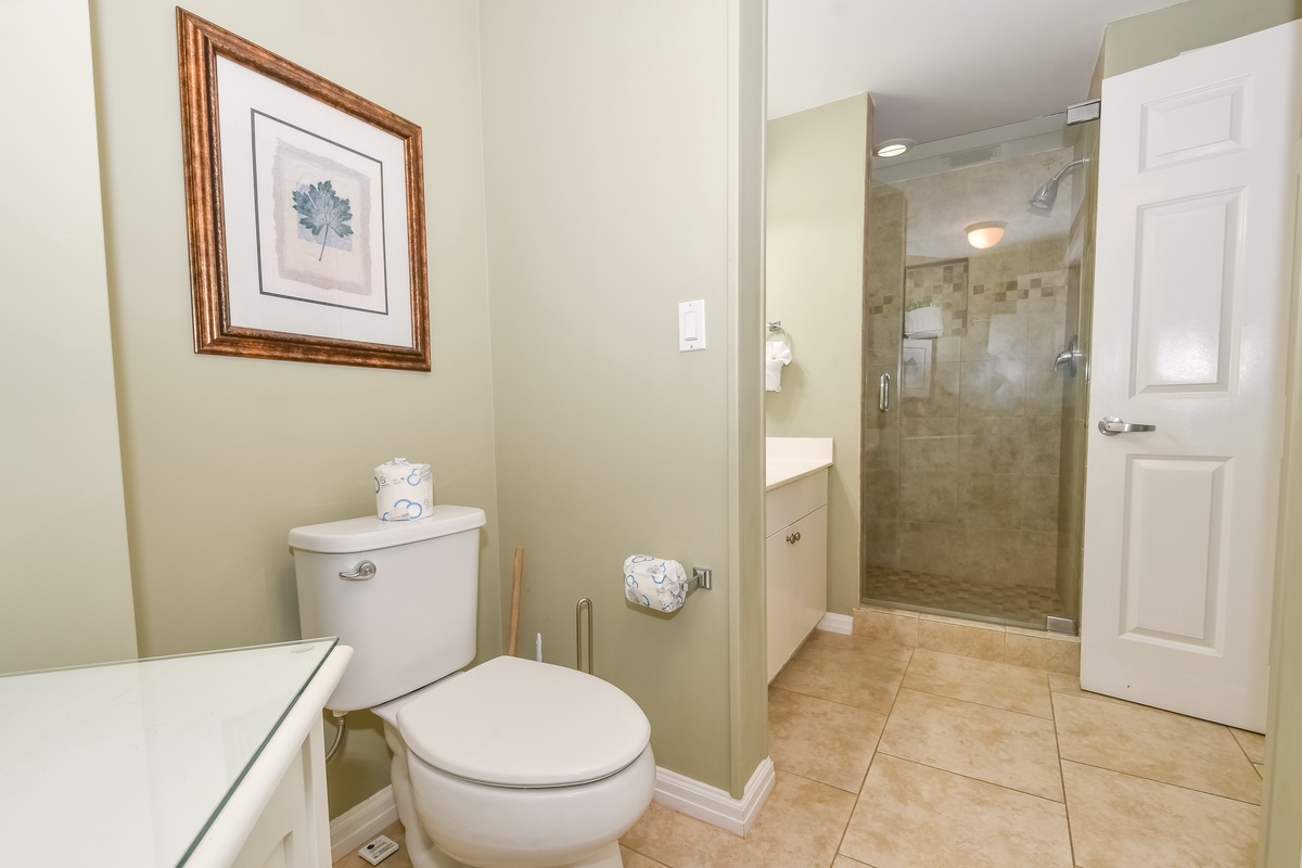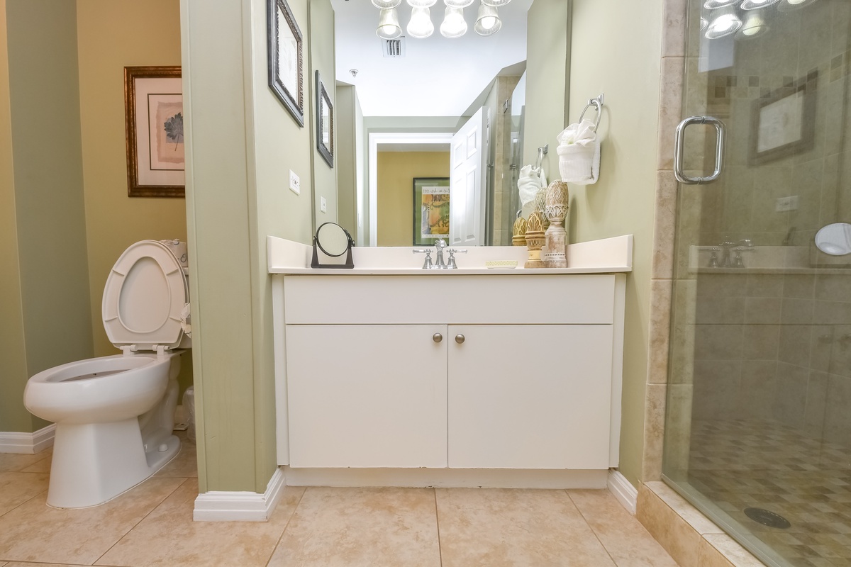 The master bedroom has incredible beach views and private access to the beachfront balcony. Complete with a king bed, walk-in closet, flat-screen TV, and private ensuite bathroom, the master bedroom was designed with relaxation in mind. The master bathroom features a jetted tub, walk-in shower, and plenty of vanity space. The guest bedroom has a king bed, a flat-screen TV, and private access to the beachfront balcony. Just steps from both the guest bedroom and the living area is a full bathroom with a walk-in shower. Inside the guest bathroom is a laundry closet complete with a full-size washer and dryer.