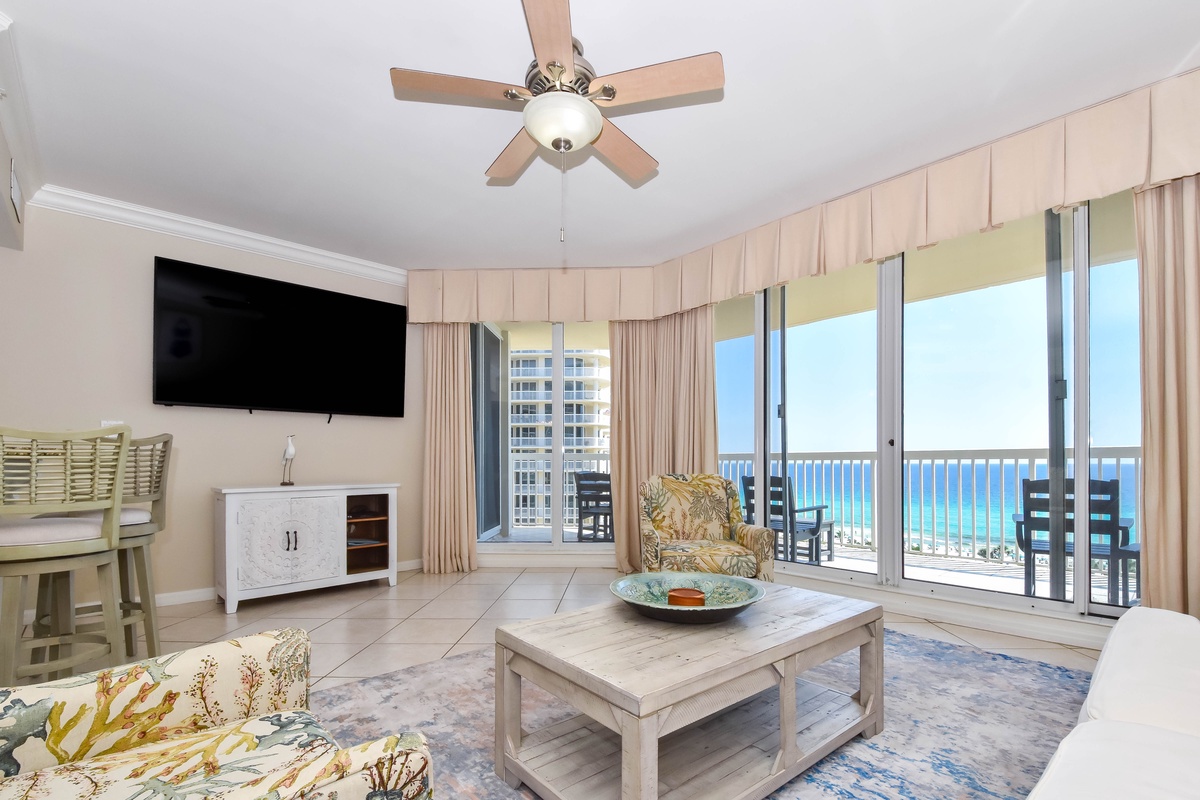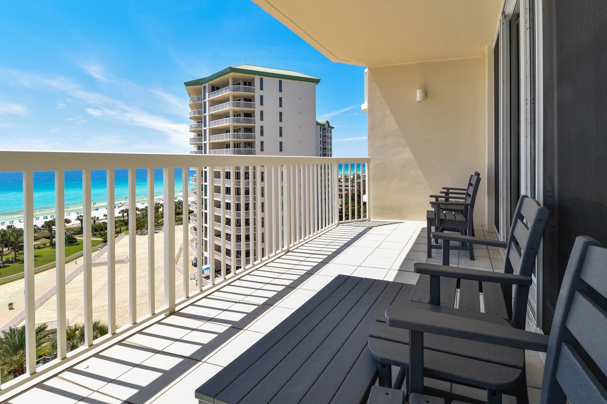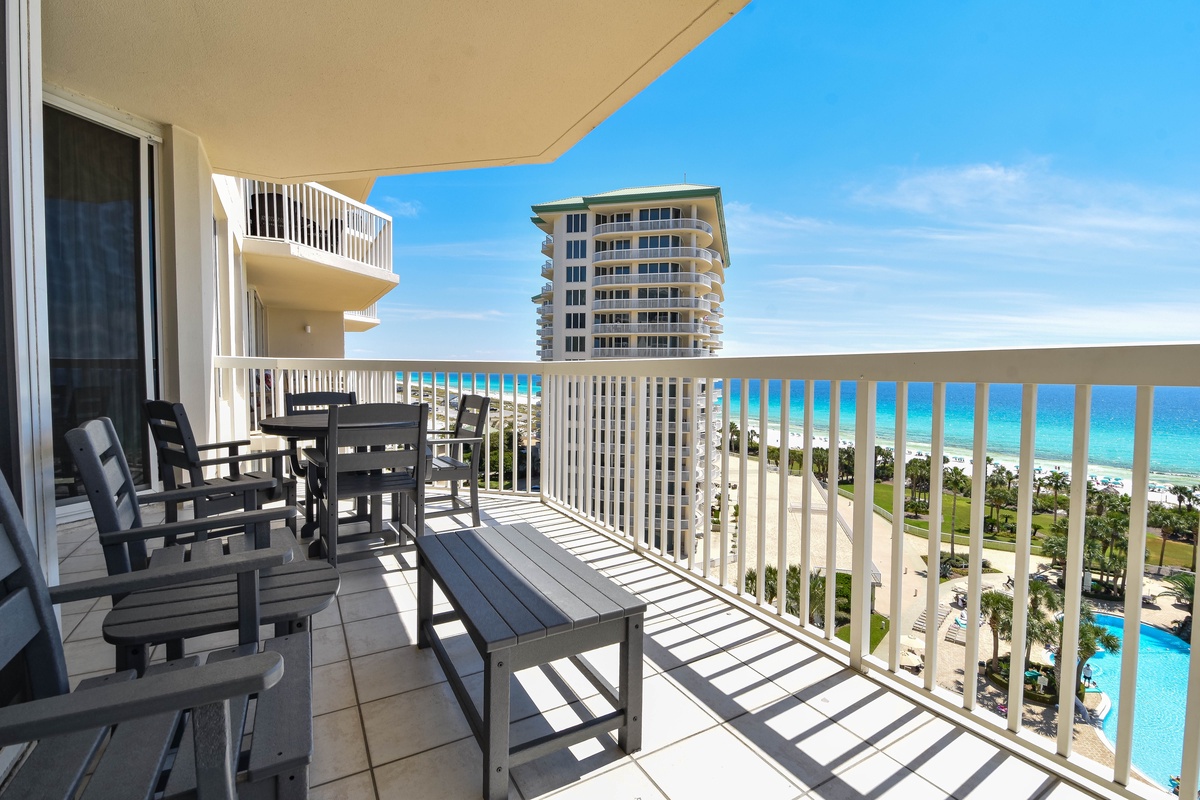 Welcome to Silver Shells St. Croix 904, a spacious three-bedroom, two-bathroom beachfront condo located on the ninth floor of the highly sought-after Silver Shells Beach Resort and Spa in Destin, Florida. This Gulf-front retreat offers breathtaking panoramic views of the Emerald Coast along with private beach access, creating the perfect setting for a relaxing and memorable Destin getaway. Inside, the open-concept living space is designed for comfort and convenience. The cozy living area provides a welcoming place to unwind, while the fully equipped kitchen includes everything you need to prepare meals during your stay. The primary bedroom features a king bed and a private en-suite bathroom. The first guest bedroom also offers a king bed, while the second guest bedroom features two twin-over-queen bunk beds. A full guest bathroom with a walk-in shower is located just steps from both guest bedrooms and the living area. For added convenience, this condo includes complimentary Wi-Fi, seasonal beach service, and an in-unit washer and dryer. Book your stay today and experience elevated beachfront living at Silver Shells St. Croix 904.