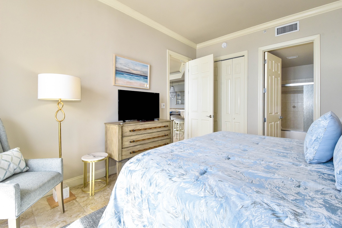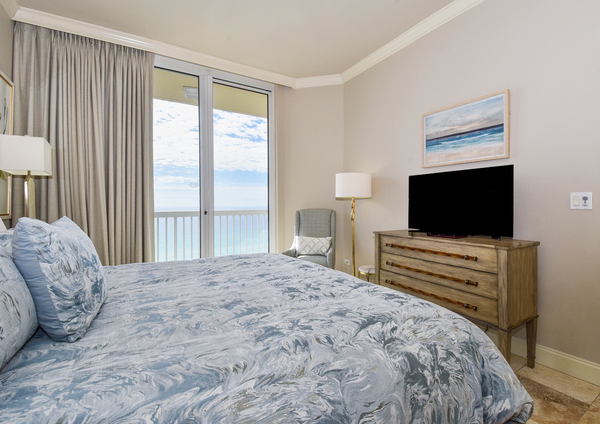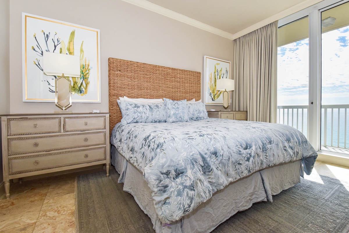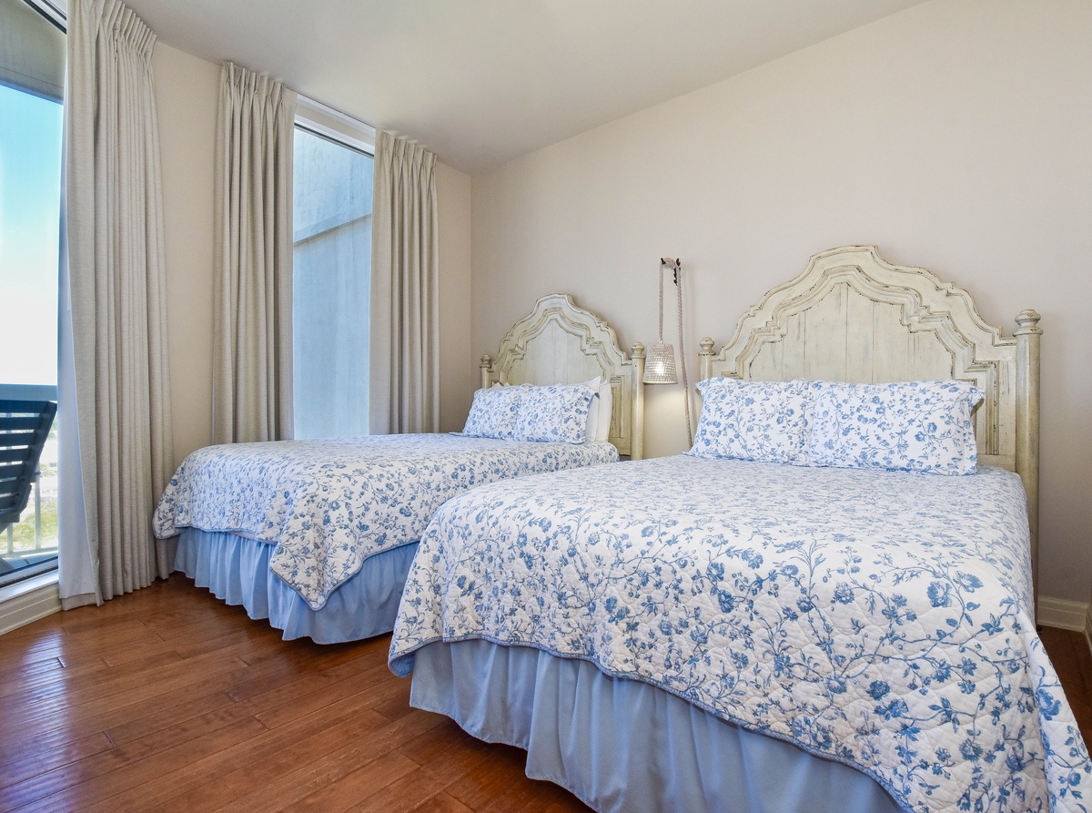 The master bedroom has incredible beach views and private access to the beachfront balcony. Complete with a king bed, flat-screen TV, and private ensuite bathroom, the master bedroom was designed with relaxation in mind. The master bathroom features a tiled walk-in shower and double vanity. The first guest bedroom has a king bed, a flat-screen TV, and private access to the beachfront balcony. The first guest bedroom also has a private bathroom with a tub/shower combination. The second and third guest bedrooms face the north side of the resort and offer unbeatable views of the resort grounds. The second guest bedroom has two queen beds, flat-screen TV, and private access to the north balcony. The second guest bedroom has a private bathroom with a tiled walk-in shower. The third guest bedroom has two twin beds, a flat-screen TV, and private access to the north balcony. The third guest bedroom has a private bathroom with a tiled walk-in shower.
