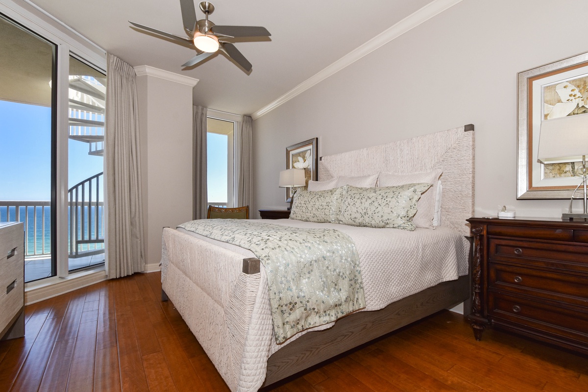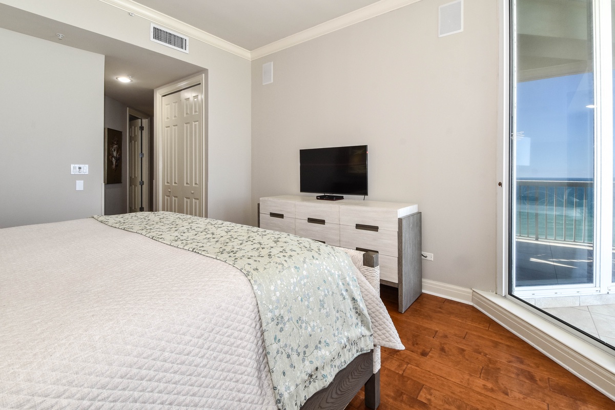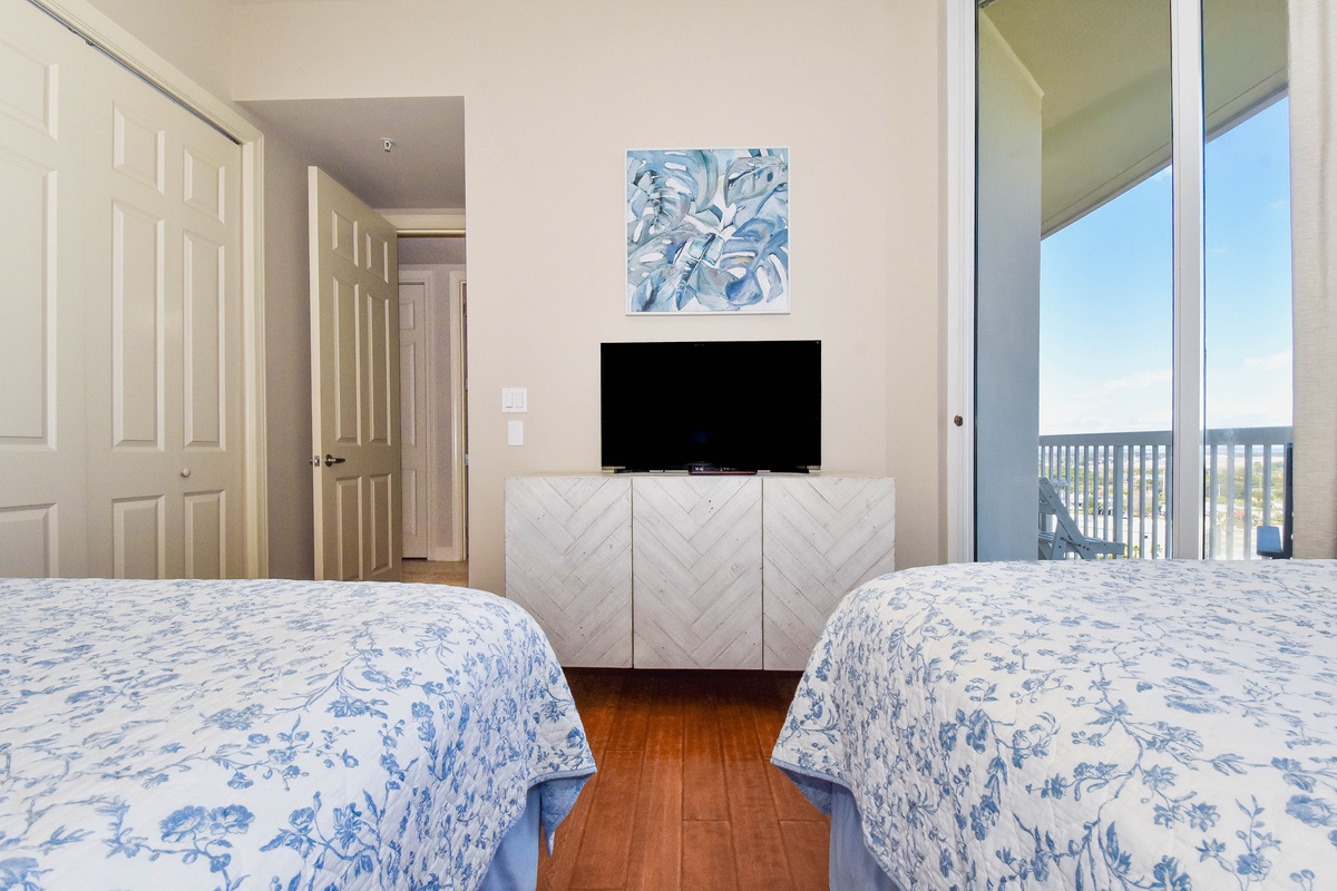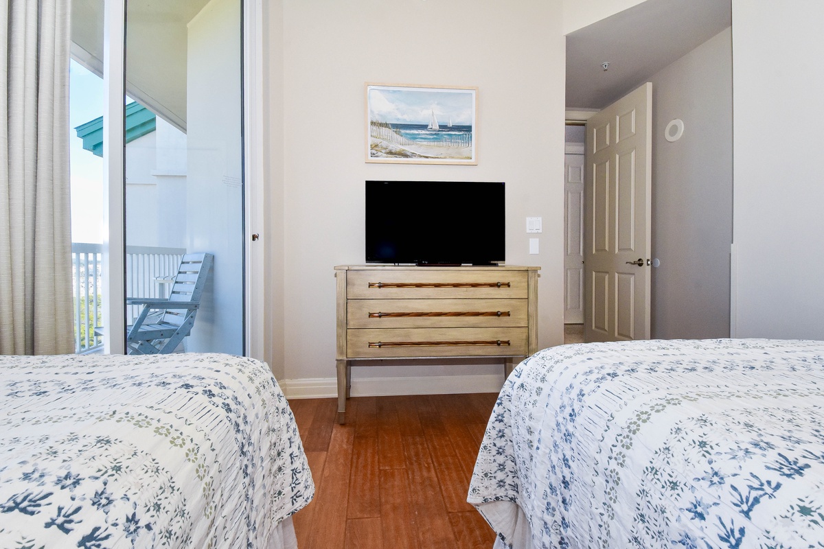 The master bedroom has incredible beach views and private access to the beachfront balcony. Complete with a king bed, flat-screen TV, and private ensuite bathroom, the master bedroom was designed with relaxation in mind. The master bathroom features a tiled walk-in shower and double vanity. The first guest bedroom has a king bed, a flat-screen TV, and private access to the beachfront balcony. The first guest bedroom also has a private bathroom with a tub/shower combination. The second and third guest bedrooms face the north side of the resort and offer unbeatable views of the resort grounds. The second guest bedroom has two queen beds, flat-screen TV, and private access to the north balcony. The second guest bedroom has a private bathroom with a tiled walk-in shower. The third guest bedroom has two twin beds, a flat-screen TV, and private access to the north balcony. The third guest bedroom has a private bathroom with a tiled walk-in shower.