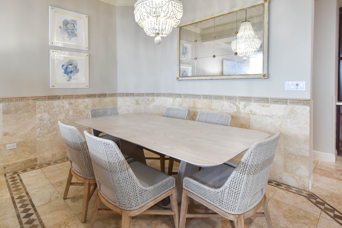 The interior spaces of Silver Shells St. Croix Penthouse 3 have been tastefully decorated with a tropical theme. An open floor plan gives the whole family or group space to relax together. The living area is beach-facing, features floor-to-ceiling windows and sliding glass doors, and offers plenty of seating for everyone to gather around the flat-screen TV. The spacious beachfront balcony is perfectly furnished to allow for entertaining or dining while taking in spectacular views of the white sand beach and emerald waters. From the balcony, you can take the spiral staircase to the private rooftop terrace that overlooks the resort's beautiful lagoon pool and private beach. The dining area has seating for six with an additional four seats at the breakfast bar. The fully equipped kitchen includes full-size appliances, a double oven, custom countertops, and all the cookware and dishware you could need for creating memorable meals.