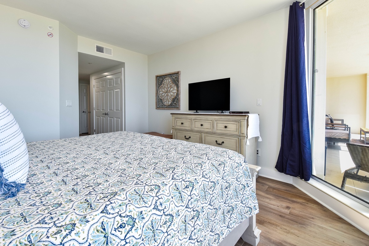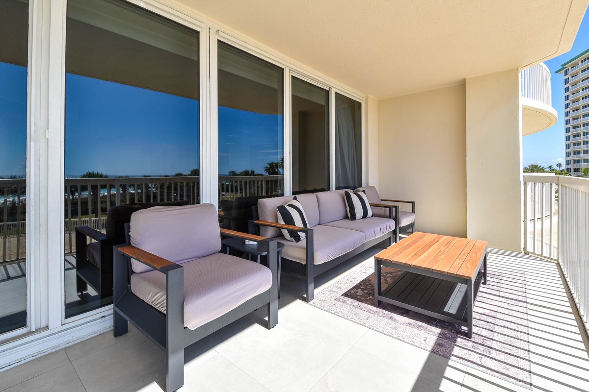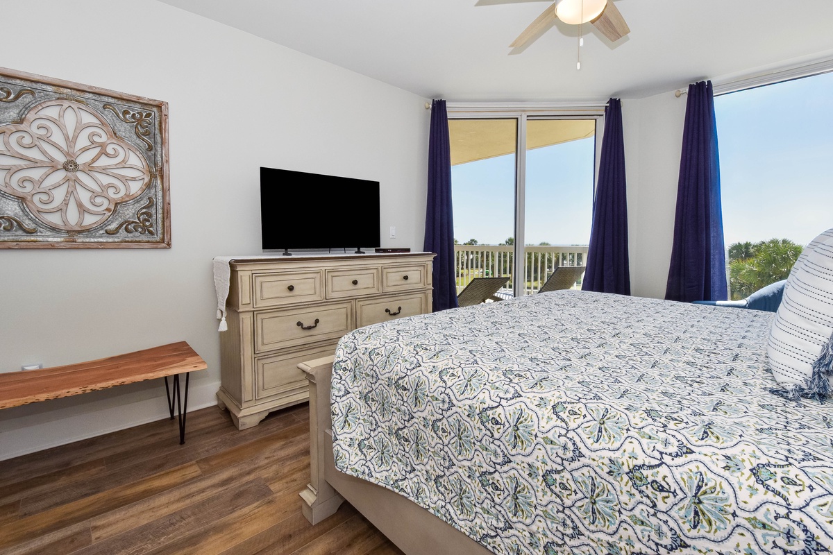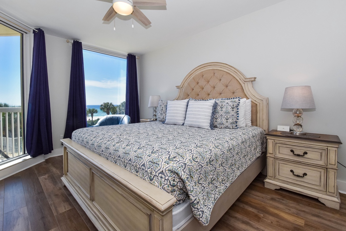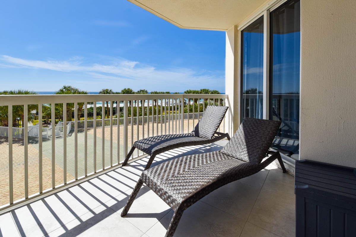 This beautiful third-floor condominium has a lengthy Gulf-front balcony overlooking the resort’s lagoon pool, lush grounds, and the private beach. There is a private entrance to the balcony from the master bedroom. The guest bedrooms both have private access to the north-facing balcony which overlooks resort grounds on the Northside of the building. The living rooms and all bedrooms have flat-screen TVs.