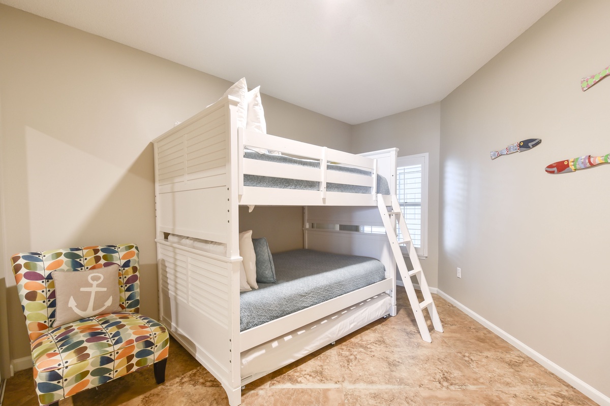 Guest Bedroom: Full-size bunk bed with twin trundle