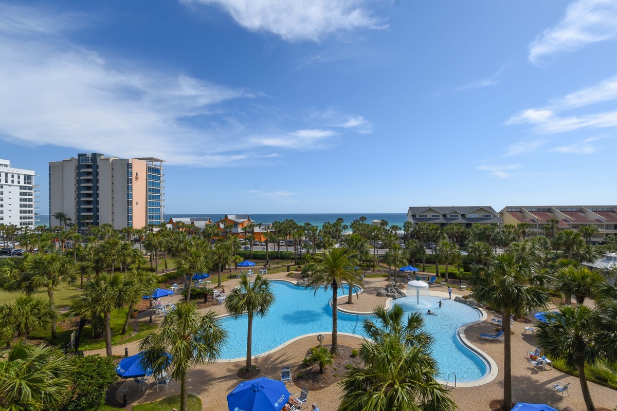 This two-bedroom, two-bath is a fun, beachy condo that offers stunning views of the community pool and the beach just beyond it. You and the whole family will love the vibrancy and convenience this vacation condo has to offer. Sterling Shores Resort has a huge, lush, pristine resort complex. Enjoy resort amenities like the community lagoon pool, the BBQ and picnic area, beachfront oasis pool, fitness center, and much more. Whether you're enjoying the Destin sunshine from the serenity of your private balcony, while you're lounging poolside, or relaxing on the beach, Sterling Shores 414 will highlight the pleasure and ease of your next Destin vacation.
