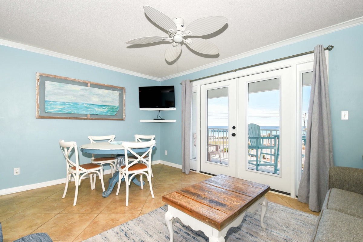 Welcome to Summerspell 309! This coastal-inspired one-bedroom, one-bathroom condo comfortably accommodates up to six guests, perfect for a couple’s getaway or small families. Step out onto the balcony to breathe in the salty air and soak in a Gulf view. An open-floor plan invites effortless conversation, with a dining table for four and a cozy living area featuring a flat screen TV. The fully equipped kitchen boasts granite countertops, brand-new appliances, and all the essentials for preparing quick meals or leisurely dinners. At the end of the day, unwind in the serene master bedroom, complete with a king bed, flat screen TV, and direct access to the full bathroom. Additional sleeping arrangements include built-in hallway bunk beds and a sleeper sofa in the living room. Please note that this third-floor condo does not have access to an elevator. Create unforgettable memories at Summerspell 309, your perfect beachside retreat.