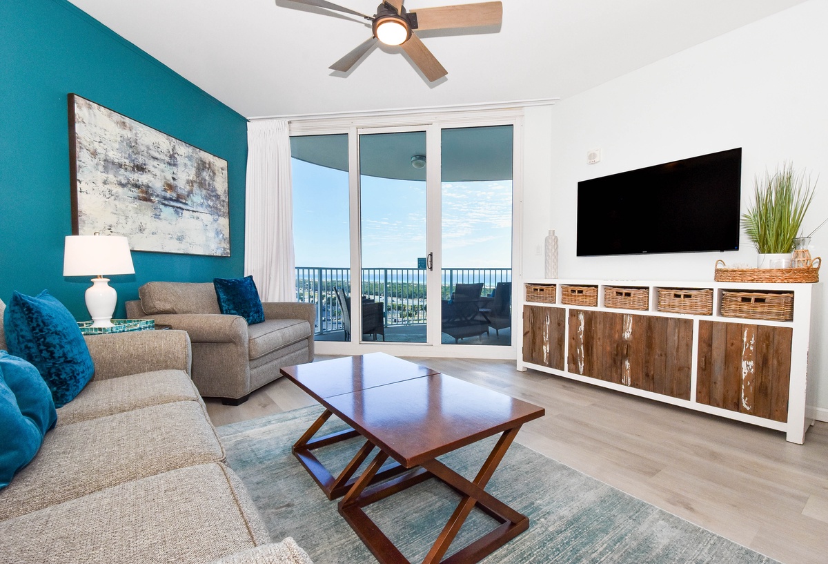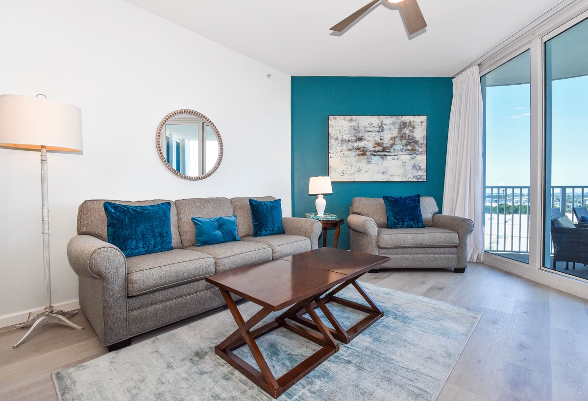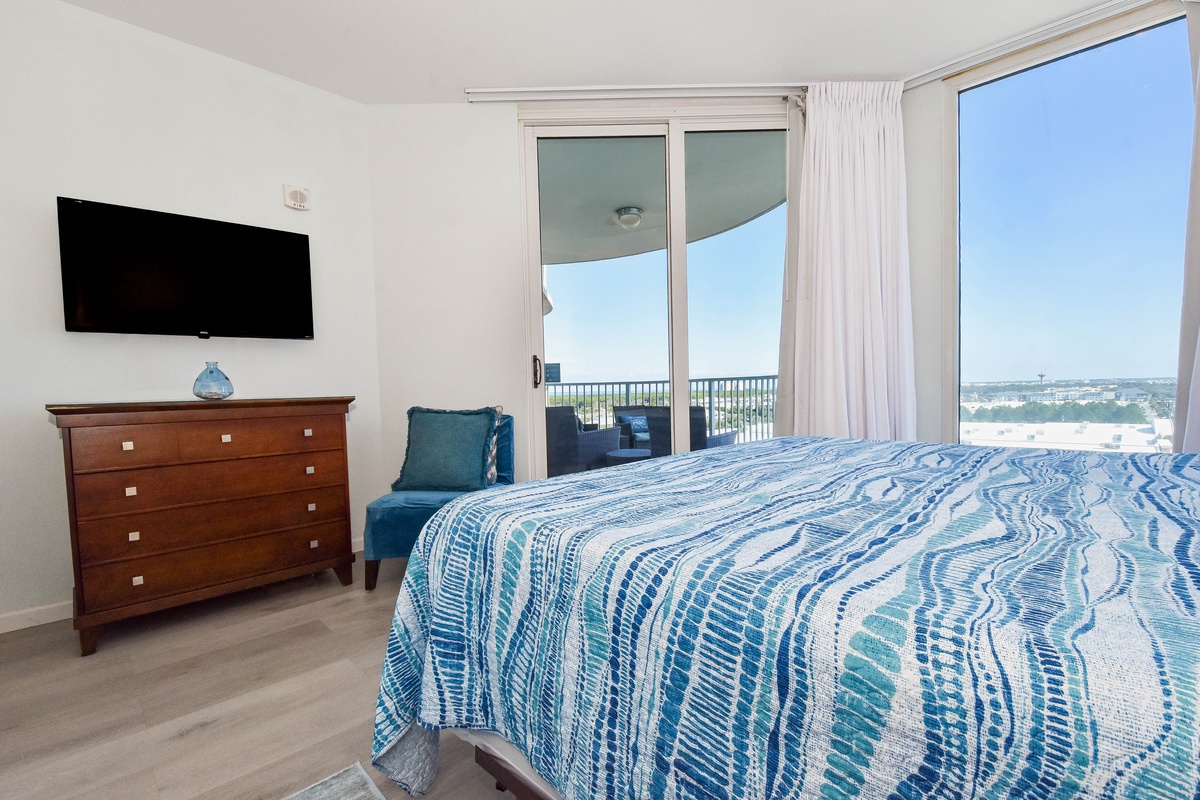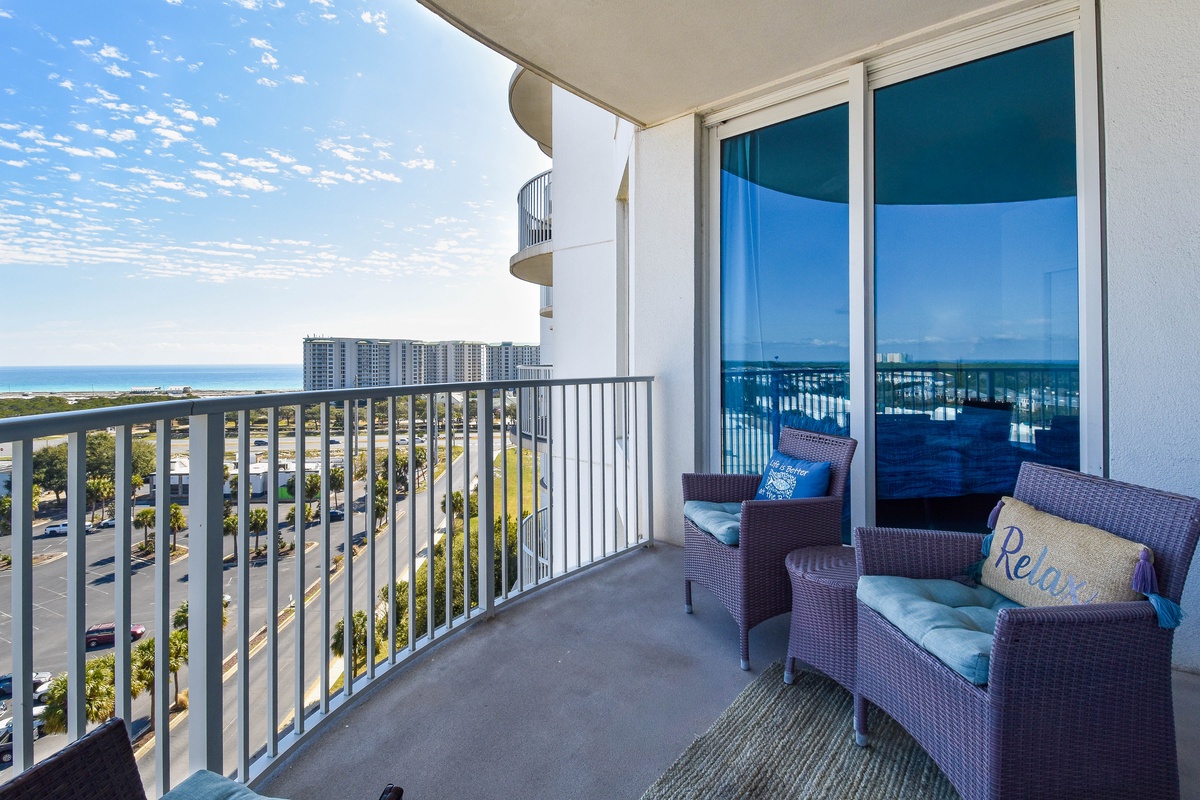 Welcome to The Palms of Destin 11004 Junior! Located on the tenth floor, this two-bedroom, two-bathroom condo offers relaxing views of Destin and includes all the comforts needed for a memorable beach getaway. The open-concept living area features a flat-screen TV and access to a private balcony, perfect for sipping morning coffee or unwinding after a day in the sun. The fully equipped kitchen includes granite countertops, a breakfast bar, and everything you need to prepare meals with ease, plus an adjacent dining area. The spacious primary bedroom features a king bed, large closet, and easy access to the attached bathroom with a tub/shower combo. The guest bedroom offers a full bed, cozy furnishings, making it ideal for families or friends traveling together. For added convenience this condo includes a washer and dryer, secure Wi-Fi and an additional bathroom with a walk-in shower. Come discover why The Palms of Destin 11004 is the perfect place to relax, recharge, and make lasting vacation memories!