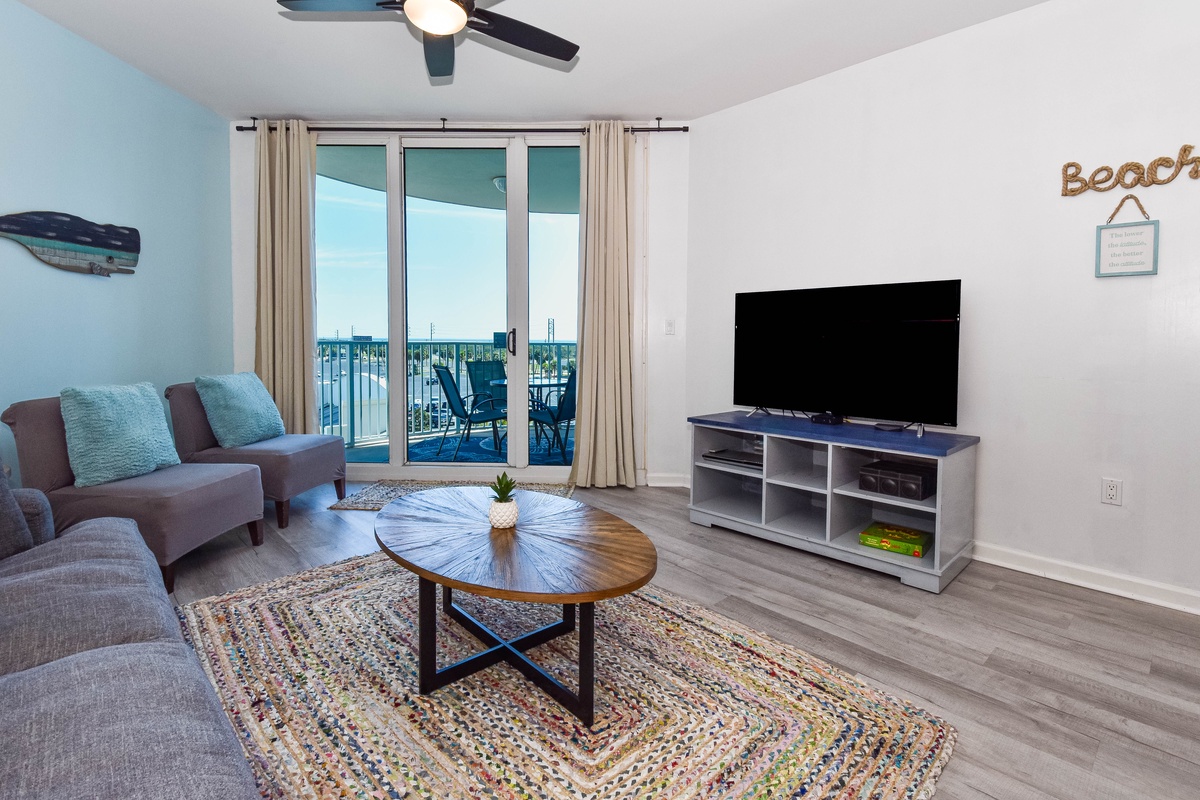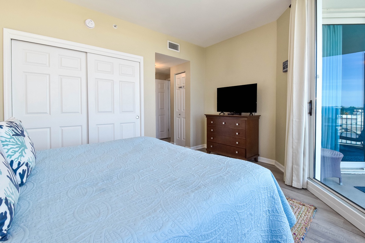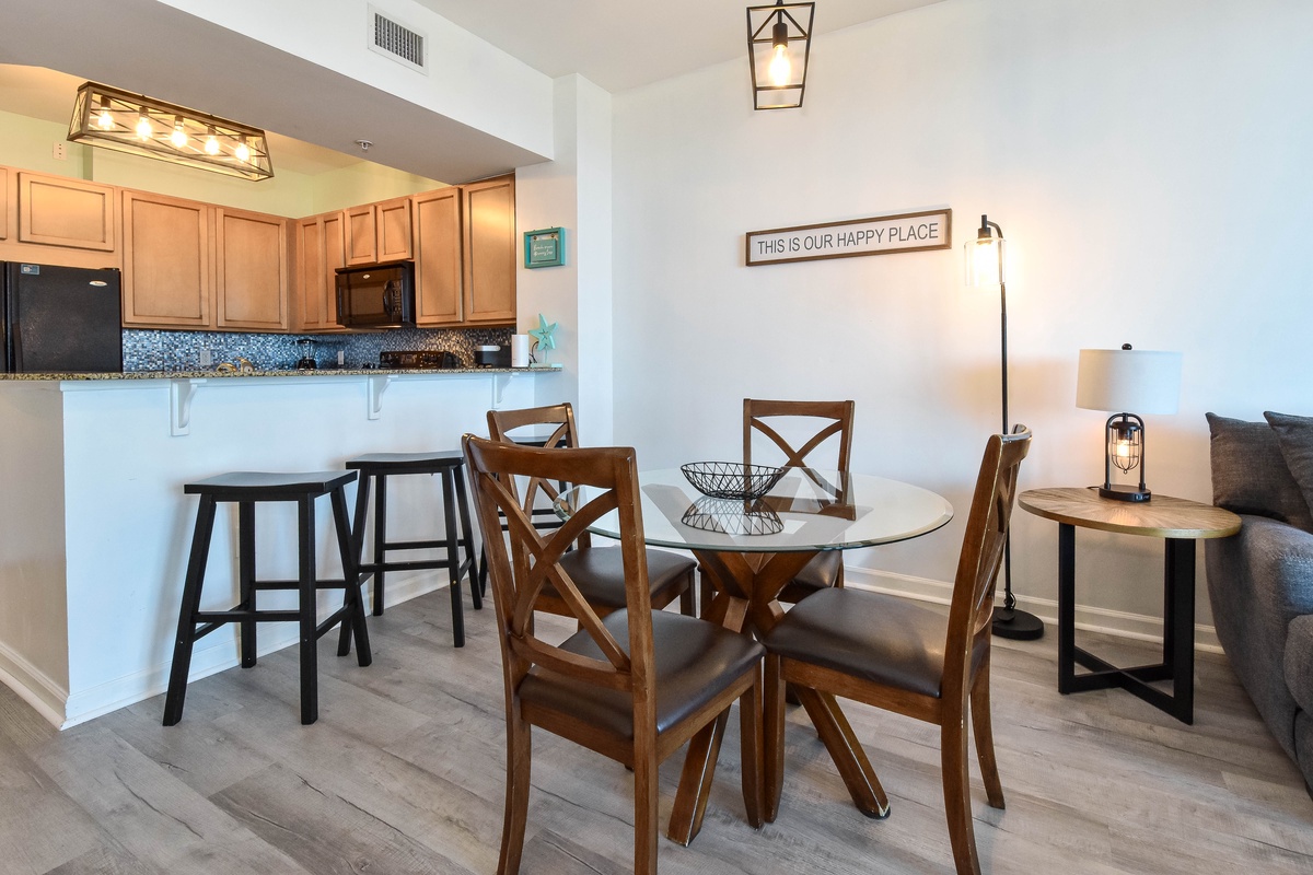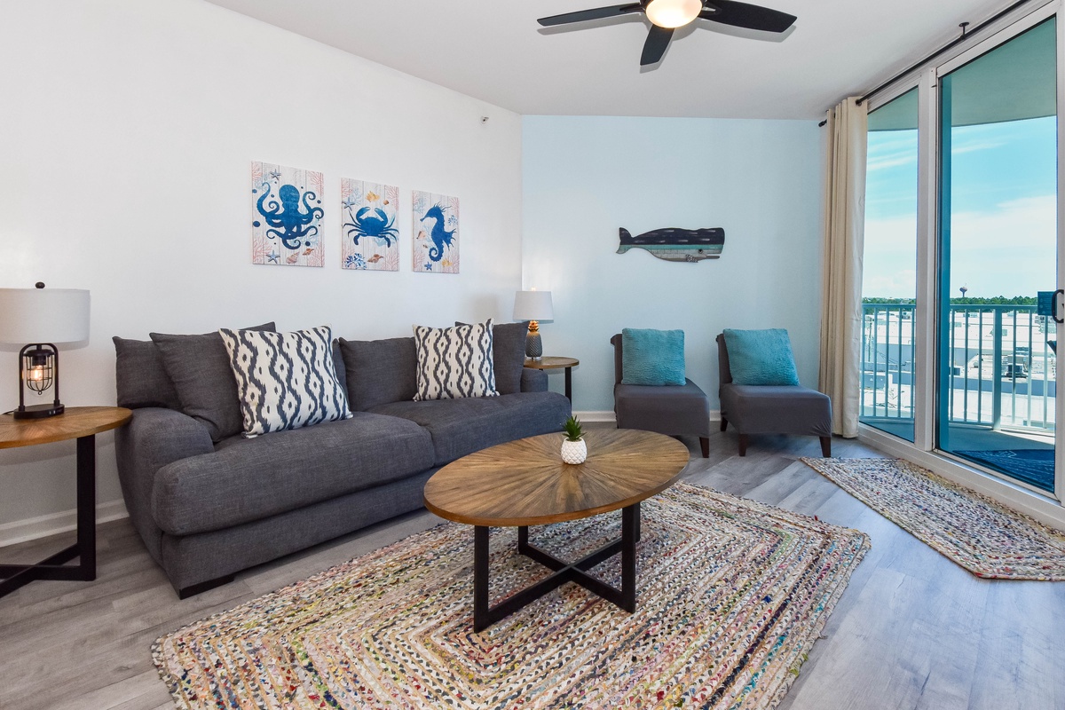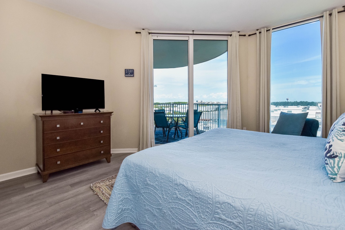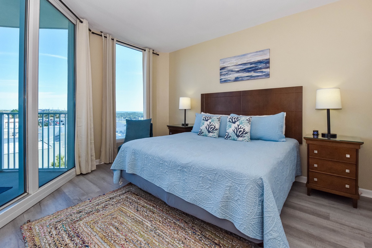 Relax at The Palms of Destin 1504 Junior! Welcome to this spacious two-bedroom, two-bathroom condo located on the fifth floor of The Palms of Destin Resort. Ideal for families or small groups, this vacation rental offers comfortable living spaces, modern amenities, and a fantastic central Destin location. Step inside to an open-concept living and dining area with cozy seating, flat-screen TVs, and a fully equipped kitchen perfect for preparing meals. The inviting balcony offers lovely views from the fifth floor of the East Tower, providing a relaxing spot to enjoy your morning coffee or evening sunset. The primary bedroom features a king bed and private bathroom, while the guest bedroom is furnished with a twin-over-full bunk bed with a twin trundle and an attached bathroom, making it ideal for kids or friends. Additional amenities include a washer and dryer and secure Wi-Fi. Whether you’re here to relax or explore, The Palms of Destin 1504 offers the perfect blend of comfort and convenience.