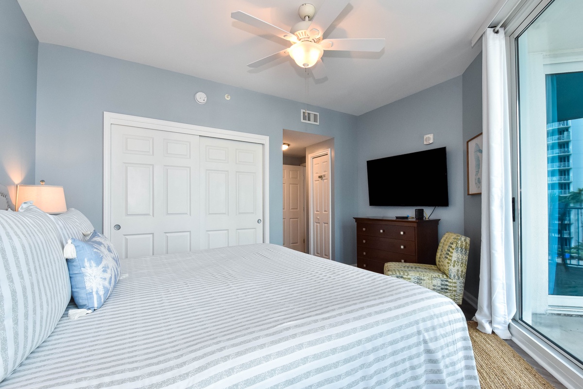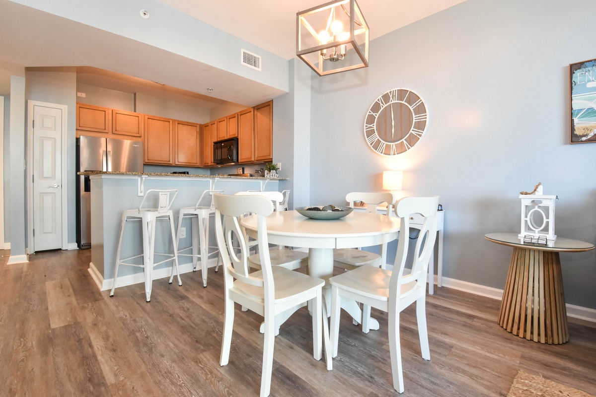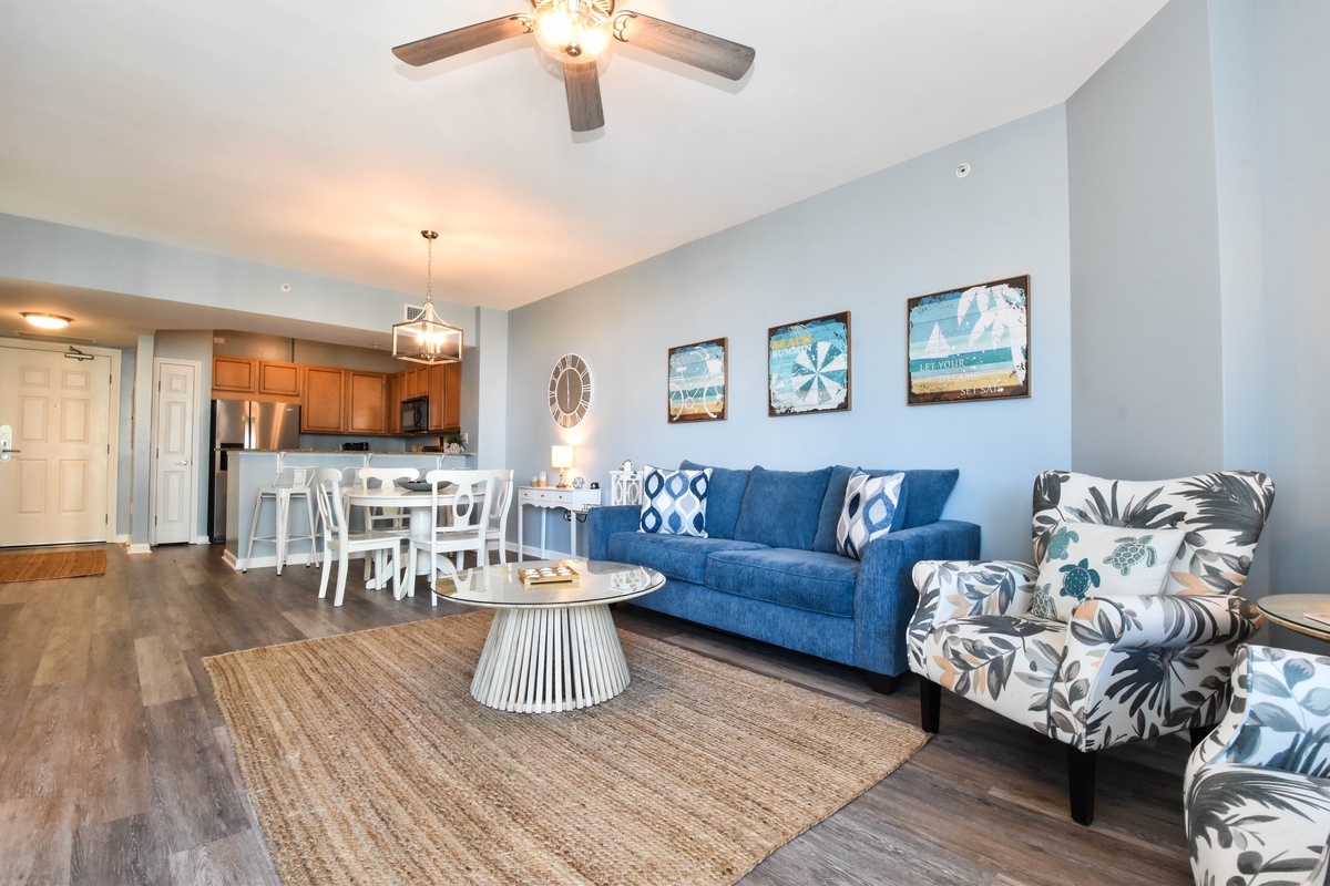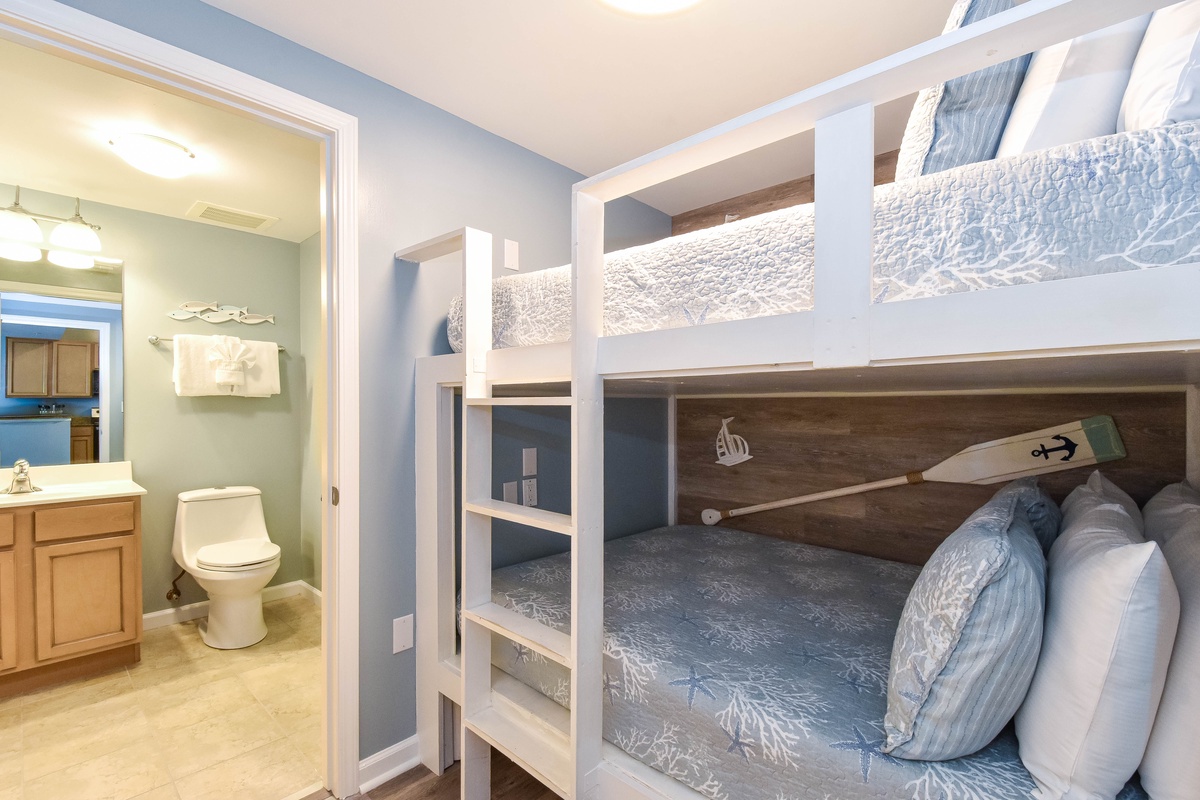 Welcome to The Palms of Destin 2409 Junior, your coastal retreat on the fourth floor in the heart of Destin! This stylish and comfortable two-bedroom, two-bathroom condo sleeps up to six guests and is the perfect home base for your next beachside getaway. Start your morning in the fully equipped kitchen, stocked with everything you need to whip up anything from quick beach snacks to hearty family dinners. Enjoy meals at the dining table for four or gather around the breakfast bar with seating for four ideal for casual bites or your morning coffee. After a fun-filled day in the sun, kick back in the cozy living area and catch your favorite show on the flat-screen TV, or step out onto the private balcony and soak in serene views of the resort’s sparkling lagoon pools. The spacious primary suite offers a king bed, balcony access, a flat-screen TV, and a private bathroom with a convenient tub/shower combo. The guest bedroom features a full-over-full bunk bed and is just steps from a second bathroom with a walk-in shower, plus an additional sleeper sofa in the living room for added guests. With added conveniences like a washer and dryer, free WiFi, and access to all of The Palms of Destin’s resort-style amenities, all designed to make your vacation easy and enjoyable. Make lasting memories at The Palms of Destin 2409 where coastal comfort meets carefree vacation living!