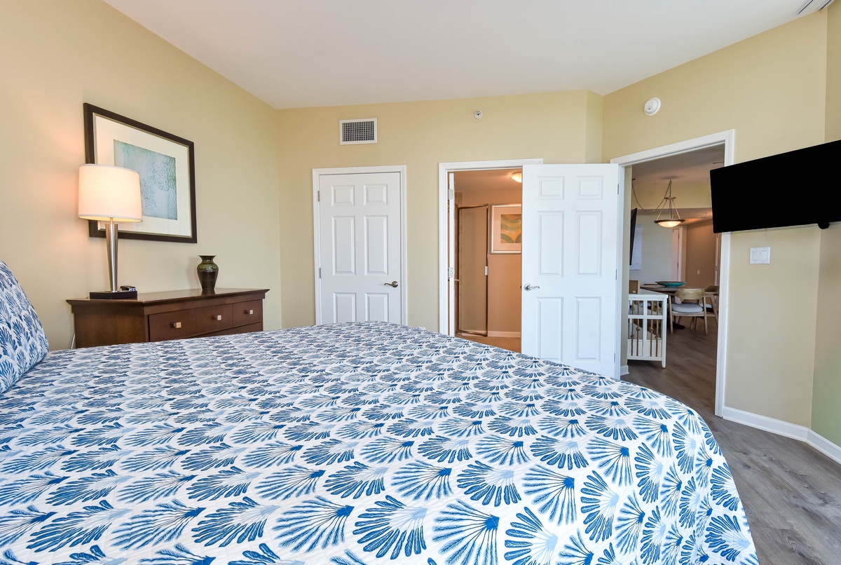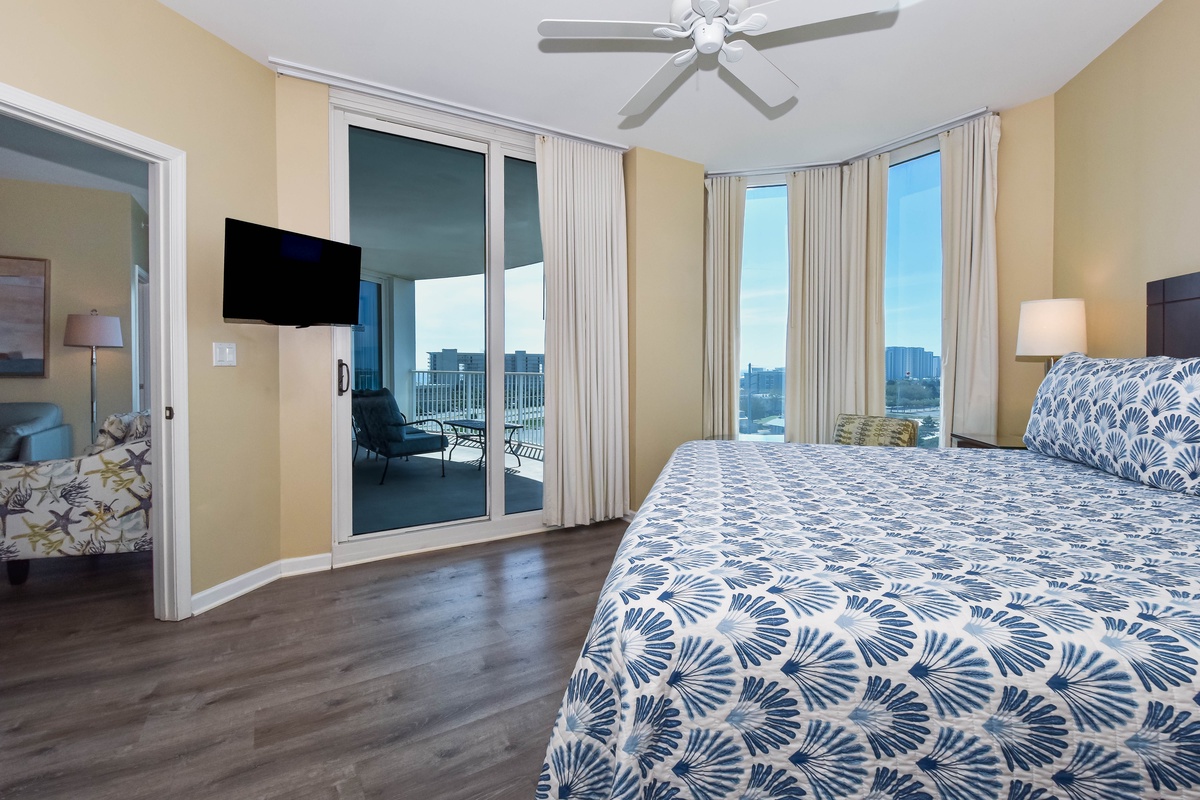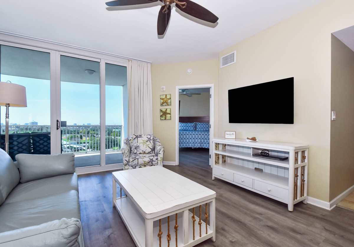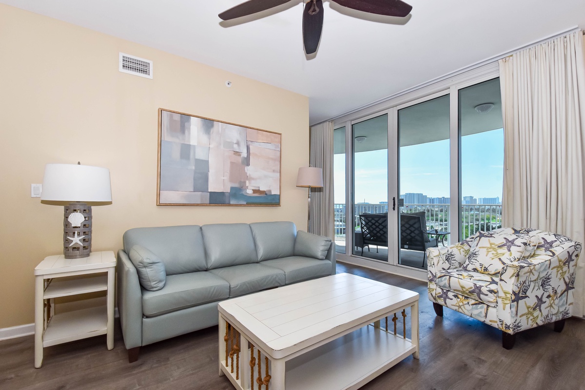 Welcome to The Palms of Destin 2816, a coastal retreat featuring two bedrooms and two bathrooms, comfortably accommodating up to six guests. Step out onto the private southwest-facing balcony and unwind as Destin’s famous sunsets paint the evening sky with breathtaking colors, creating the perfect backdrop for relaxing after a day at the beach. Inside, the open living area is designed for comfort, whether you are enjoying a movie night on the flat-screen TV, catching up with family, or gathering for a fun game night. The fully equipped kitchen offers everything you need to prepare your favorite meals with ease, along with seating for four at the dining table and additional space for three at the breakfast bar. Relax in the spacious primary bedroom featuring a king bed, direct balcony access, a flat-screen TV, and an attached bathroom with a walk-in shower. The guest bedroom also offers a king bed, flat-screen TV, and balcony access, providing a relaxing retreat for additional guests plus there is a sleeper sofa in the living area for extra sleeping space. For added convenience, the condo also features a hall bathroom with a tub/shower combination, in-unit laundry, and secure Wi-Fi. Book your Destin beach vacation at The Palms of Destin 2816 and experience the perfect blend of comfort, resort amenities, and beautiful sunsets.