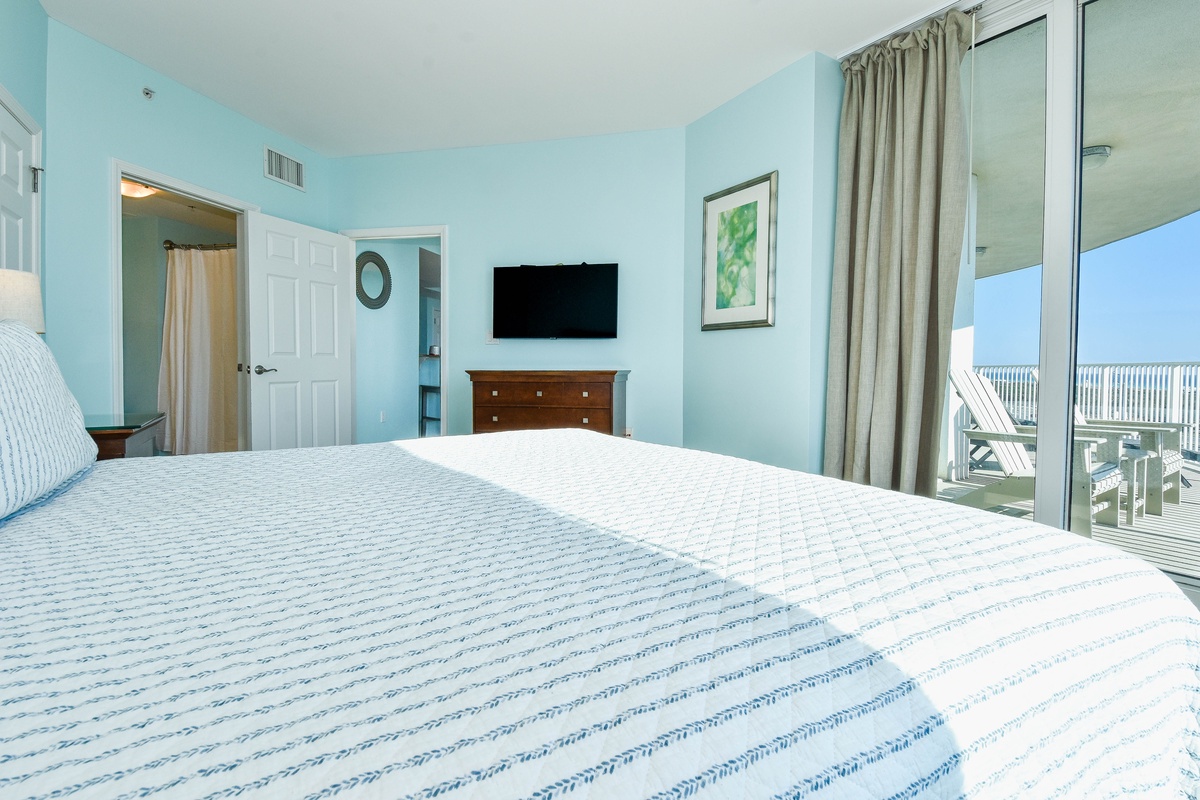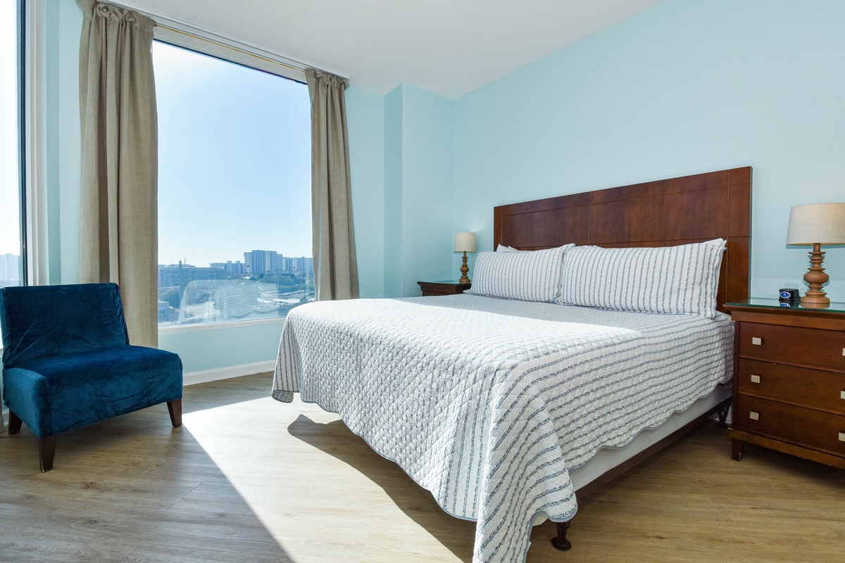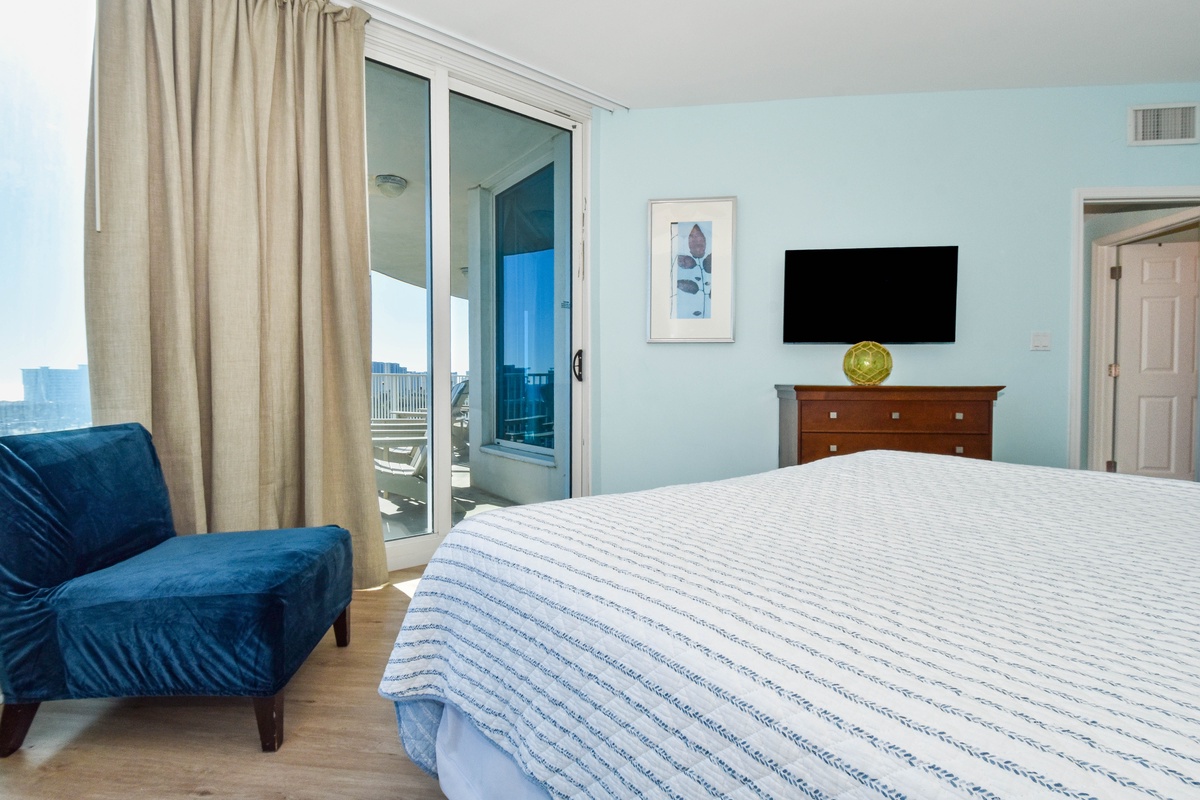 Find your next slice of paradise at The Palms of Destin 2817. This three-bedroom two bath sleeps up to eight guests comfortably. Relax on the south-facing balcony with panoramic views of the Gulf and lagoon pool or enjoy the natural light streaming through floor-to-ceiling windows. The chef of the group will find the fully equipped kitchen has everything they will need to whip up a quick meal for the beach or a nice dinner in. There is a dining table that seats six with additional seating at the breakfast bar for four whenever it is time to eat. Unwind at the end of the day in the living area in front of the flat screen TV with a movie and popcorn or enjoy the space for a friendly competition during game night. An inviting primary bedroom features a king, balcony access, flat screen TV, plus an attached bathroom with a tub/shower combo. Guests will find an additional king bedroom and a queen bedroom; both offer flat screen TVs and balcony access. For added convenience this condo features a hall bathroom with a tub/shower combo, in unit laundry, and secure WIFI. Come make your everlasting beach vacation memories at The Palms of Destin 2817 today.
